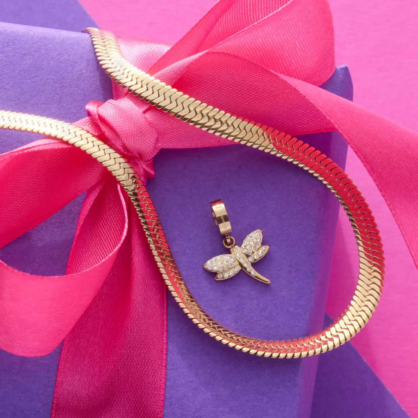 Ergänze deine Schmuck-Favorites mit diesem zauberhaften Libellen-Anhänger – ob im Kontrast zur kräftigen Ankerkette aus der gleichen Serie oder zu anderen Goldstücken. Die kleine, stilisierte Libelle ist mit ihrem Pavé-Besatz ein funkelnder Hingucker. Sie symbolisiert das Gefühl von Leichtigkeit, aber auch Veränderung und eignet sich daher auch wunderbar zum Verschenken. Zum Fixieren dient ein M-Clip.