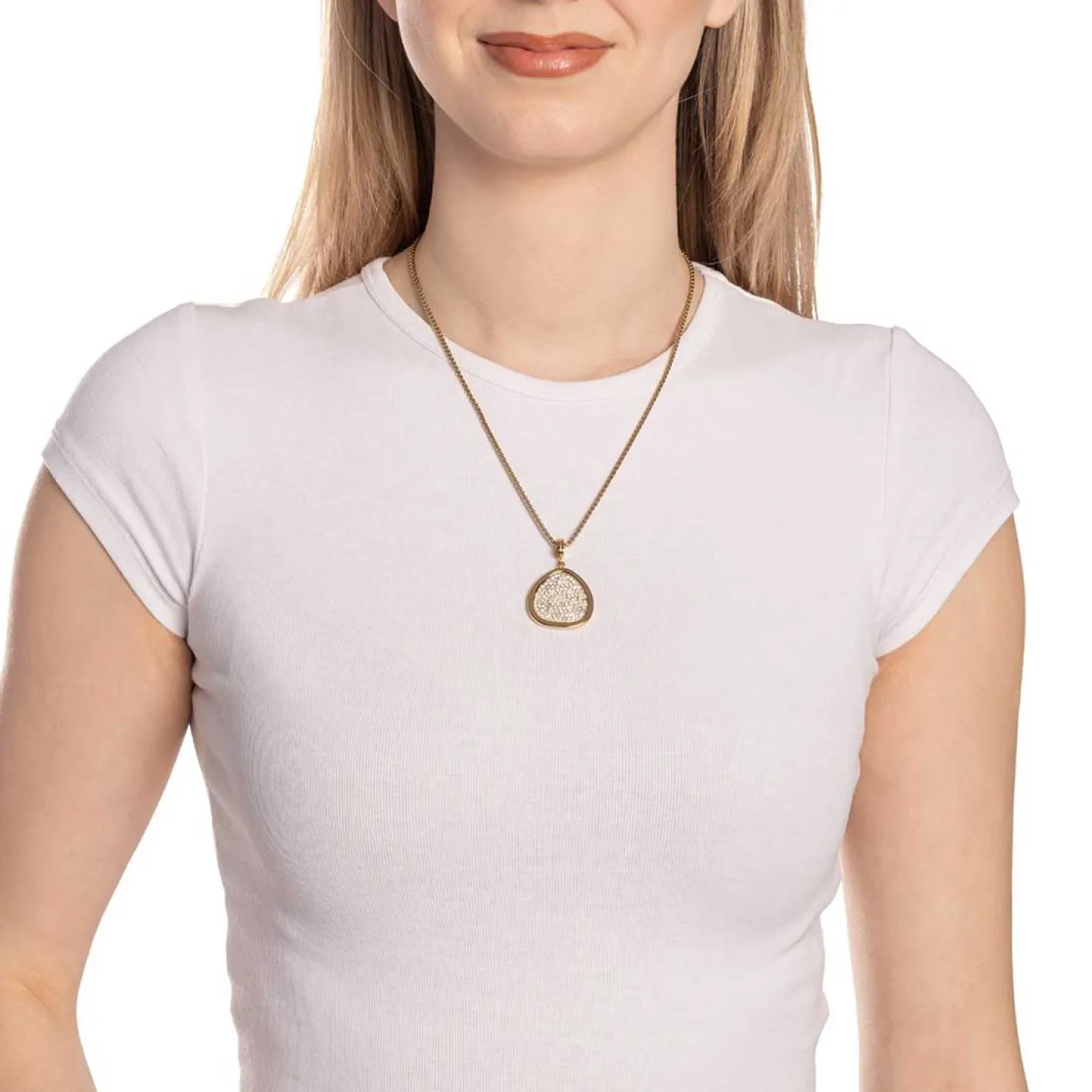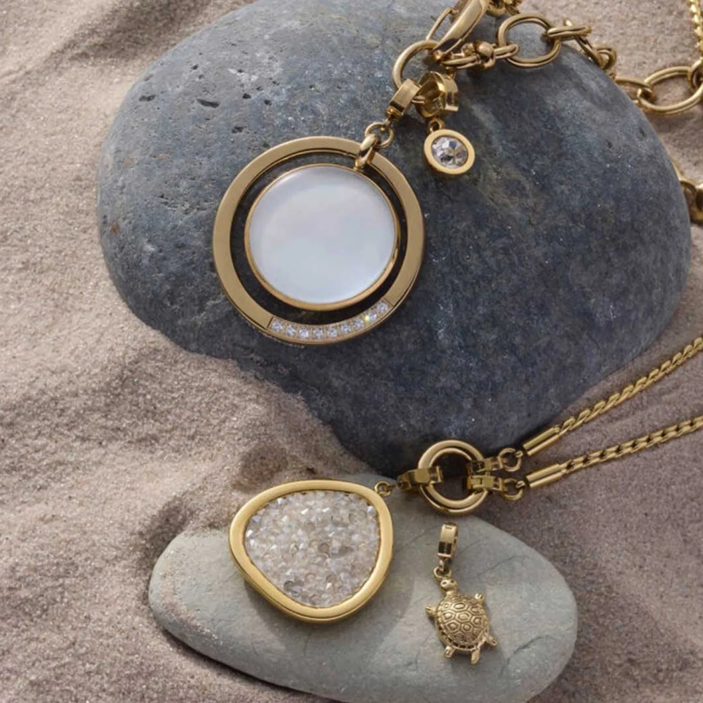 Der Anhänger FRANCA CLIP & MIX verbindet funkelnde Eleganz mit modernem Design. Der goldfarbene Anhänger aus poliertem Edelstahl hat die Form eines abgerundeten Dreiecks und schimmert durch seine Einlage aus irisierenden Glaskristallen in Weiß und hellem Grau. Die filigrane Struktur verleiht dem Anhänger eine edle, lichtreflektierende Wirkung, die jeden Look aufwertet. Mit dem integrierten Clip in Größe M lässt sich der Anhänger schnell und einfach an Ketten oder Armbändern der LEONARDO Clip&Mix-Kollektion befestigen. Ein vielseitiges Schmuckelement, das deinem Look im Handumdrehen eine glamouröse Note verleiht.