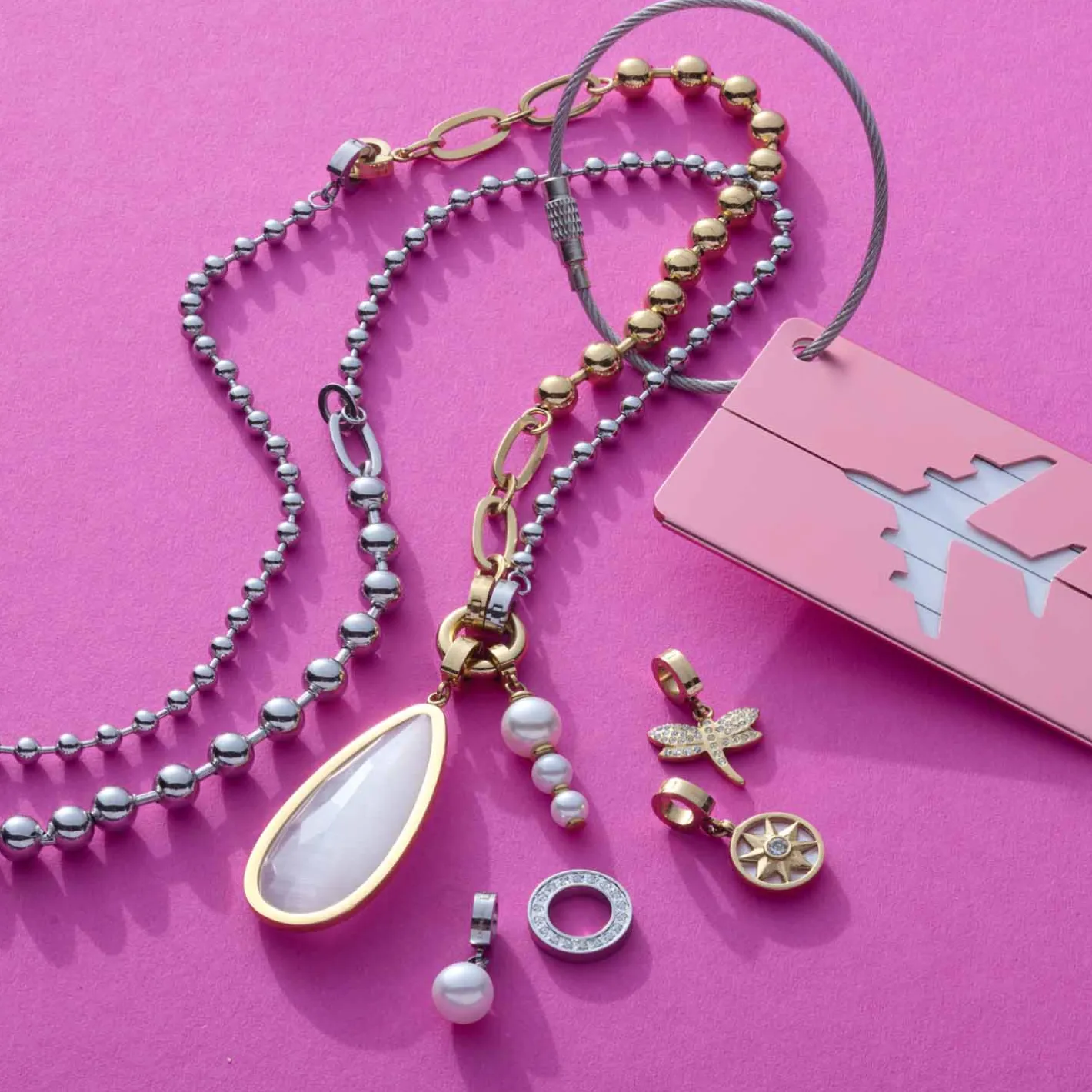 Dieser Charm erinnert an eine Windrose und ist damit ein tolles Symbol für den richtigen Weg. Er besteht aus einer kleinen Perlmutteinlage, auf der ein dreidimensional wirkender Stern mit acht breiten Zacken aus Gold liegt. In der Mitte funkelt noch ein runder, facettierter Glasstein. Du kannst den Anhänger sowohl zur opulenten Gliederkette als auch zum zarten Modell kombinieren. Wofür du dich auch entscheidest, er fängt das Gefühl von Schutz und Hoffnung perfekt ein.