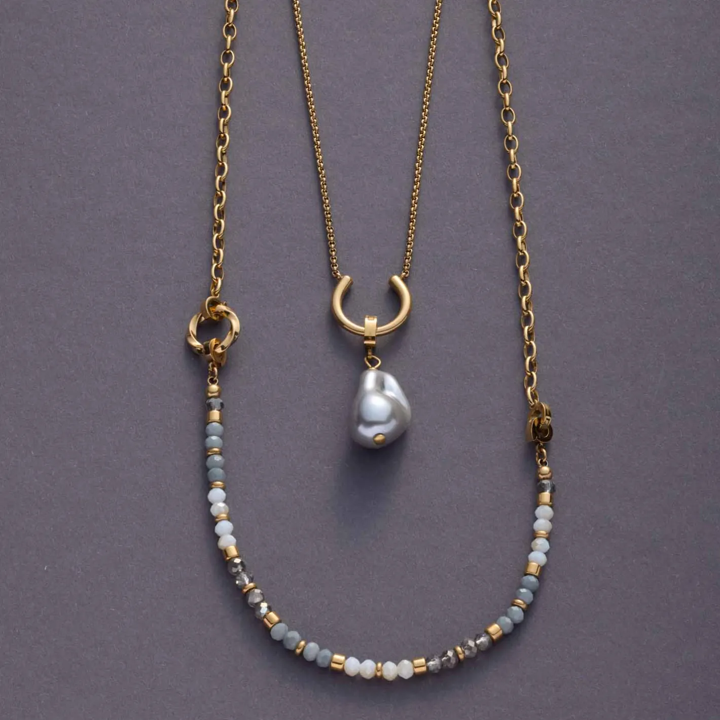 Das Armband BERNIE ist mehr als nur ein klassisches Accessoire – es ist flexibel, wandelbar und stilvoll zugleich. Gefertigt aus den gleichen eleganten Glasschliffperlen und goldenen Elementen wie die passende Kette, setzt es dezente Highlights an Deinem Handgelenk. Dank der Clip & Mix Funktion lässt sich das Armband nicht nur bequem anlegen, sondern auch als raffinierte Verlängerung in die Kette integrieren. Ein Schmuckstück, das mit Dir und Deinem Stil spielt – ob solo getragen oder im kreativen Set.