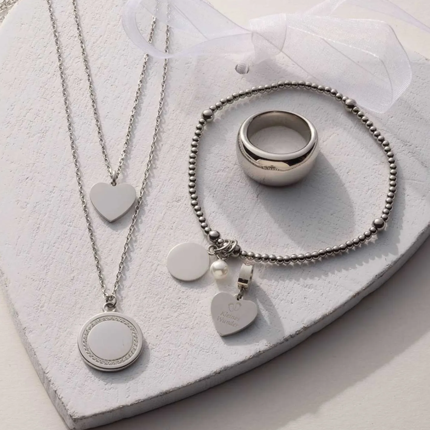 Das Armband DEBBY ist ein eleganter Allrounder, der schlichte Raffinesse mit liebevollen Details verbindet. Die feinen, gereihten Metallkugeln aus poliertem Edelstahl verleihen dem Zugarmband einen modernen Look, der sich angenehm an dein Handgelenk schmiegt. In regelmäßigen Abständen unterbrechen größere Kugeln das Design und setzen stilvolle Akzente. Zwischen zwei dieser Kugeln befindet sich eine zarte, weiße Perle und eine runde Gravurplatte, die auf beiden Seiten Platz für eine persönliche Gravur bietet. So wird das Armband zu einem individuellen Schmuckstück mit emotionalem Wert. Das flexible Zugband sorgt für hohen Tragekomfort und macht das Armband DEBBY zu einem Lieblingsaccessoire für jeden Tag – elegant, modern und mit persönlicher Note.