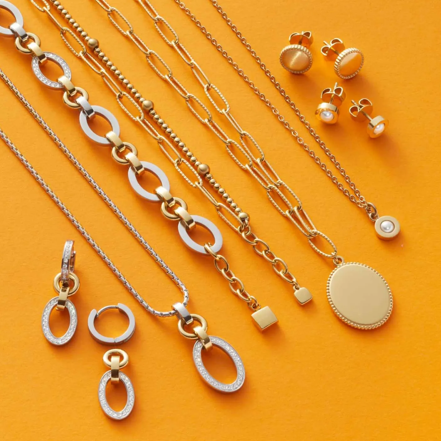 Trendstarker Chunky-Look für das Handgelenk. Große, verschieden geformte Edelstahl-Kettenglieder mit und ohne goldene Ionenplattierung wechseln sich ab und schaffen den modernen Bicolor-Look des Armbands. Das mittlere ovale Kettenglied trägt klare, facettierte Zirkonia-Steinchen und schenkt dem Armand ein edles Finish sowie opulenten Charme.
