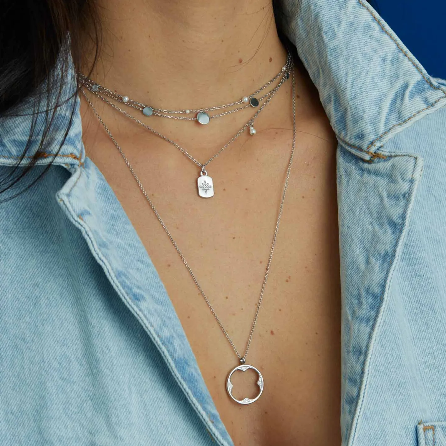 Die kurze Ankerkette aus Edelstahl macht sich schön in angesagten Layering-Looks, überzeugt aber auch solo getragen. Den Mittelpunkt spielt ein weich geformter, rechteckiger Anhänger. Kleine Zirkonia Steinchen in Form eines Sternes bringen den Anhänger zum Funkeln. Zusätzlich sind in der Kette zwei übereinander angeordnete Perlen eingehängt und bilden einen charmanten Kontrast. Mit der Verlängerungskette kann die Länge individuell angepasst werden.