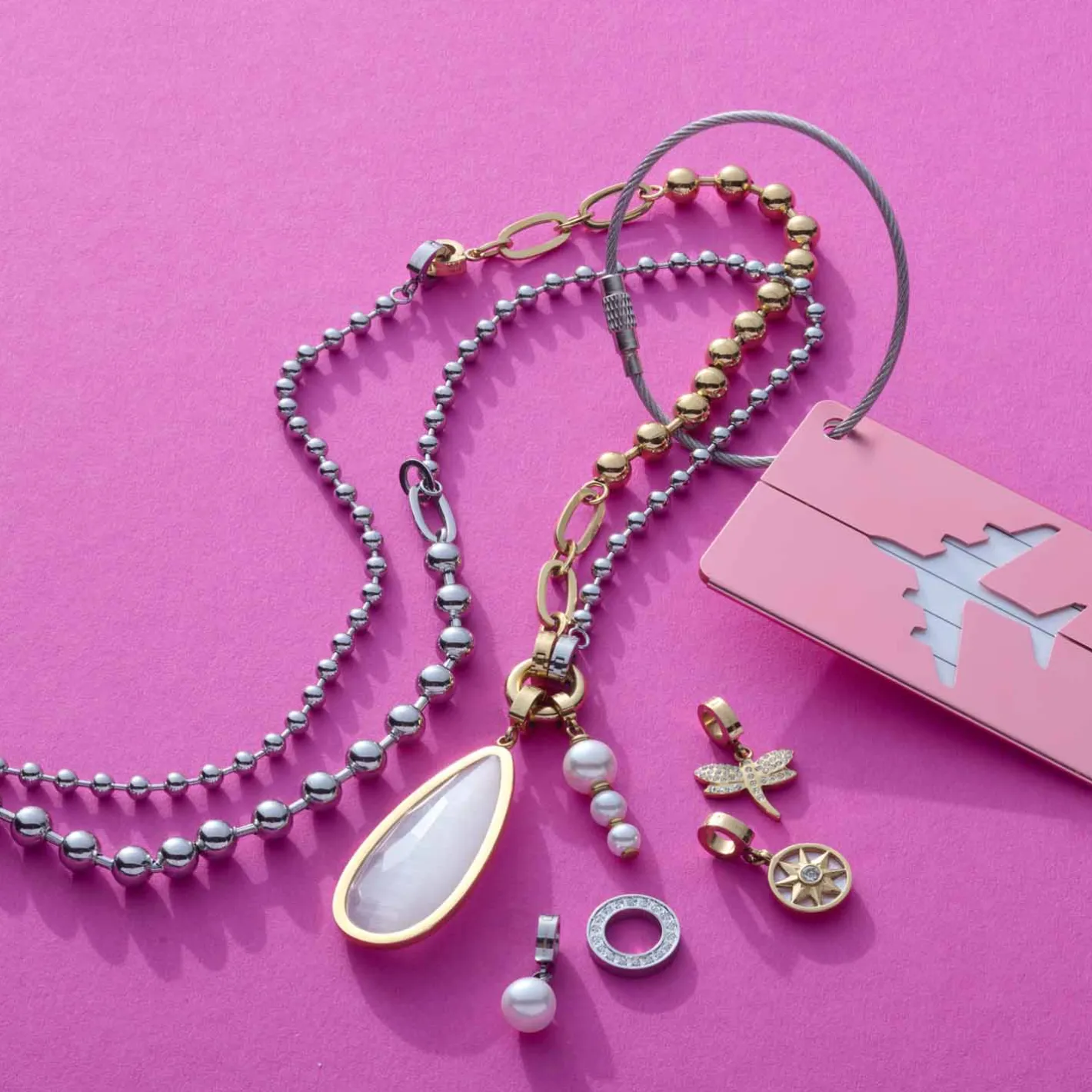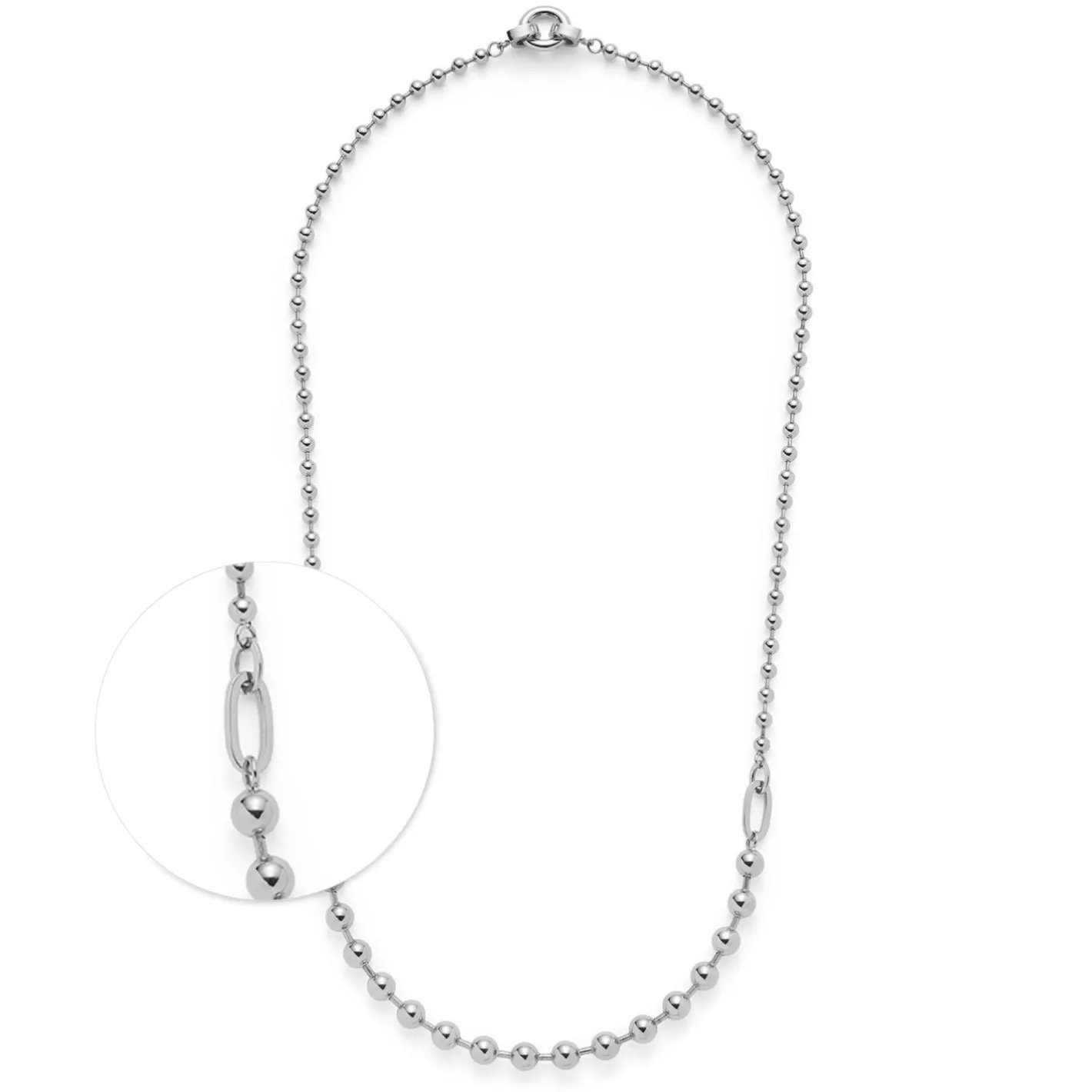 Diese mittellange Kugelkette vereint elegantes Design mit vielseitigen Styling-Möglichkeiten. Die Mischung aus feinen und kräftigeren Kugeln, verbunden durch flache, ovale Ringe, macht sie zu einem besonderen Hingucker. Ob mit Clip-Anhängern oder solo getragen – die detailreiche Kette überzeugt in jeder Variante. Mit den Clips in Größe M kannst du sie zudem mühelos erweitern, etwa durch das passende Armband. Ein vielseitiges Schmuckstück für deine Looks und jeden Anlass!