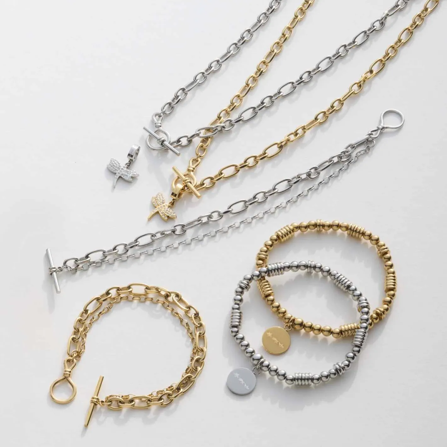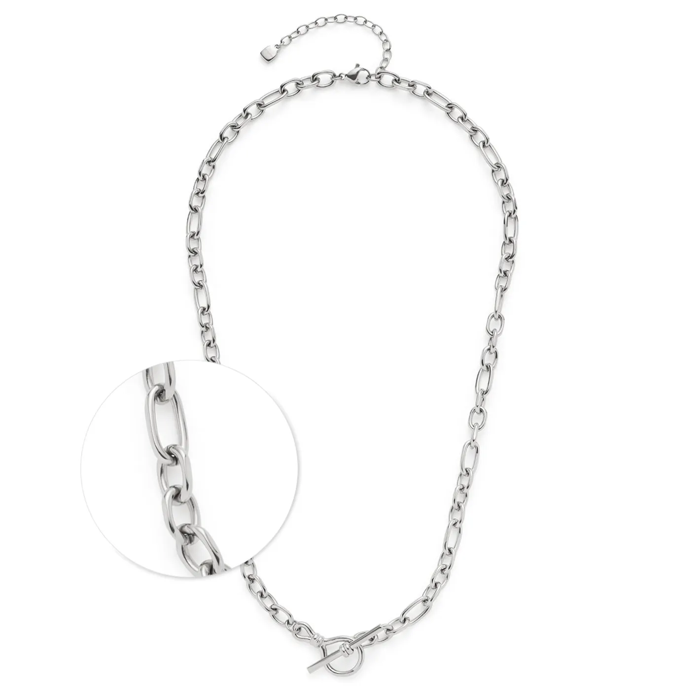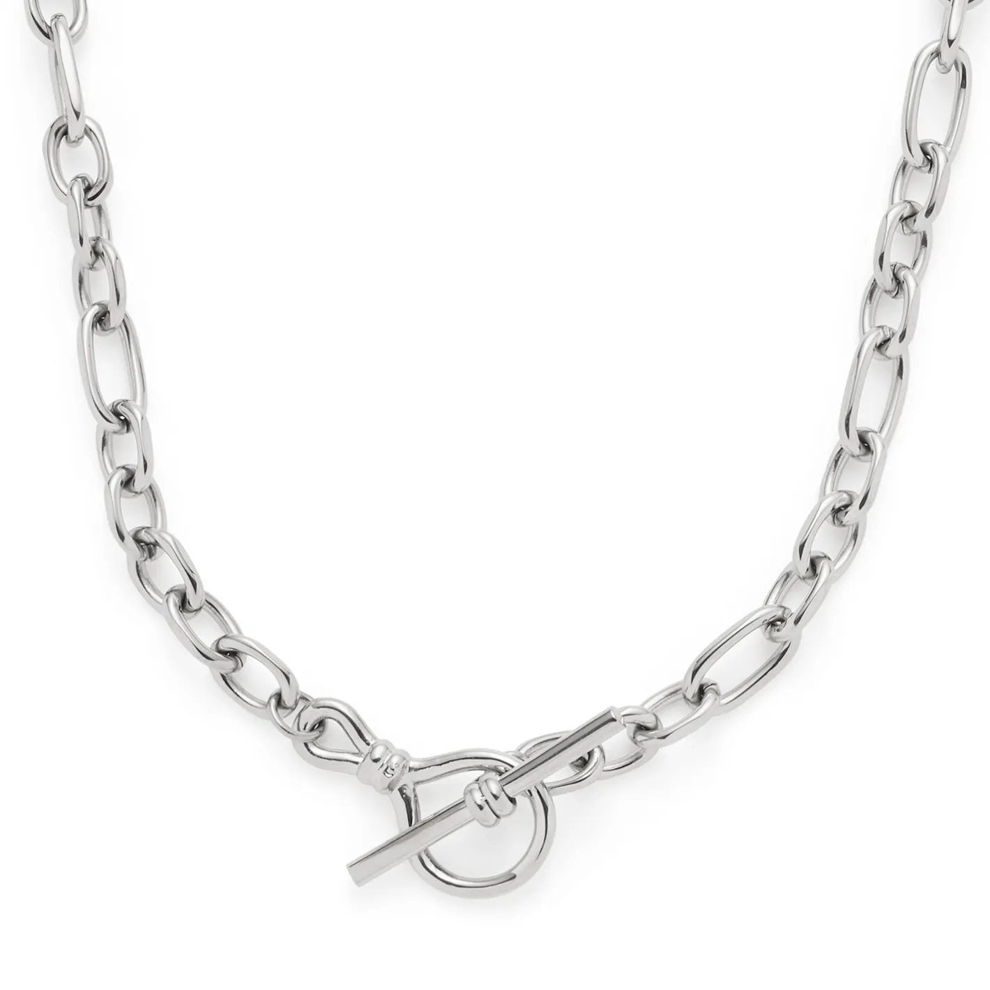Eleganz mit Extravaganz. Die geschliffene Ankerkette begeistert mit unterschiedlich geformten Gliedern, die ihr ein lässiges Upgrade verleihen. Passend dazu zeigt sich vorne noch ein fixierter Knebelverschluss, der die leicht rockige Note der Kette perfekt widerspiegelt. Trage die Kette solo oder kombiniere sie mit einem deiner Lieblingscharms, diesen kannst du wunderbar in dem Knebelverschluss integrieren. Ein Piece für wahre Statement-Looks.