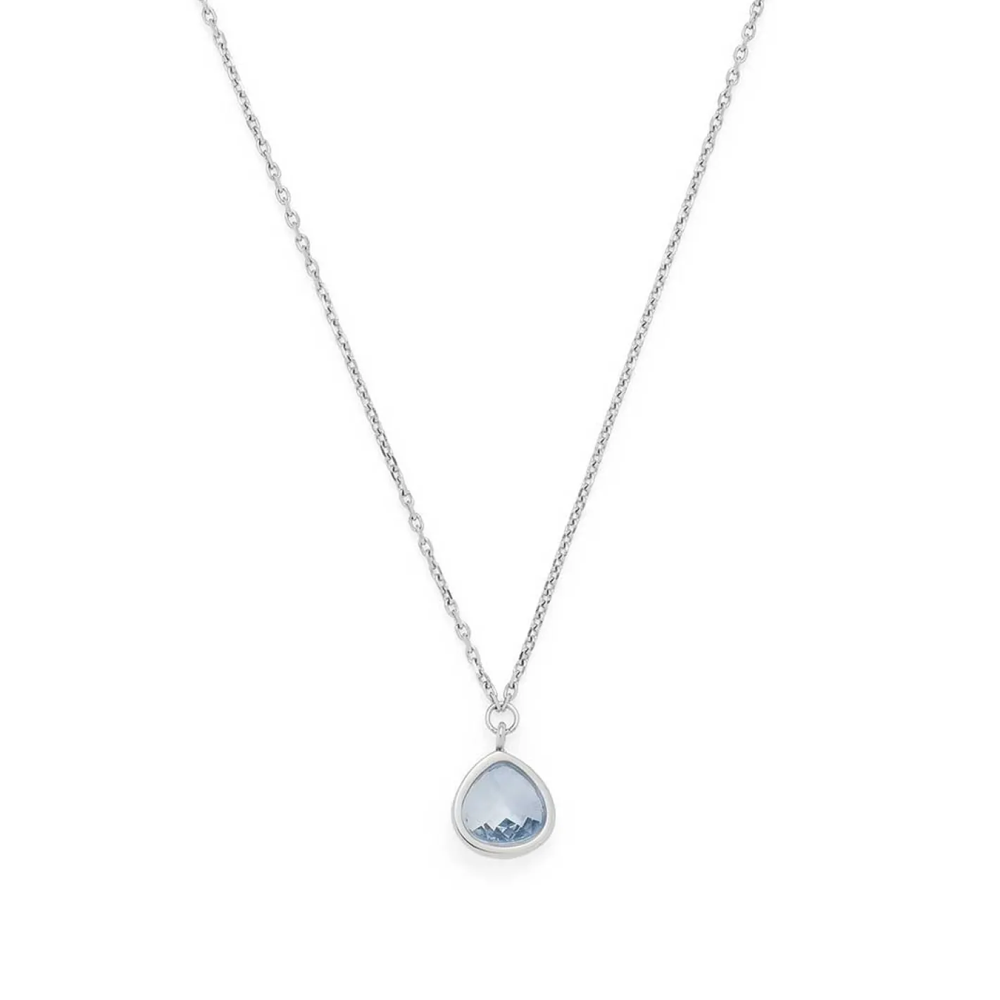 Die Halskette INDRA vereint moderne Schlichtheit mit sommerlicher Frische. Die kurze, feine Ankerkette aus poliertem Edelstahl trägt einen blassblauen, facettierten Glasstein in Form eines rundlichen Dreiecks. Durch seine transparente, lichtreflektierende Oberfläche entsteht ein sanfter Glanz, der jeden Look aufwertet. Der schmale Rahmen unterstreicht das minimalistische Design und bringt den Stein dezent zur Geltung. Dank Karabinerverschluss mit Verlängerungskette lässt sich die Länge flexibel anpassen – ideal, um die Kette solo zu tragen oder mit weiteren Schmuckstücken zu kombinieren. Die Halskette INDRA ist ein vielseitiger Begleiter für den Alltag und passt perfekt zu sommerlichen Outfits oder als elegantes Geschenk für stilbewusste Schmuckliebhaberinnen.