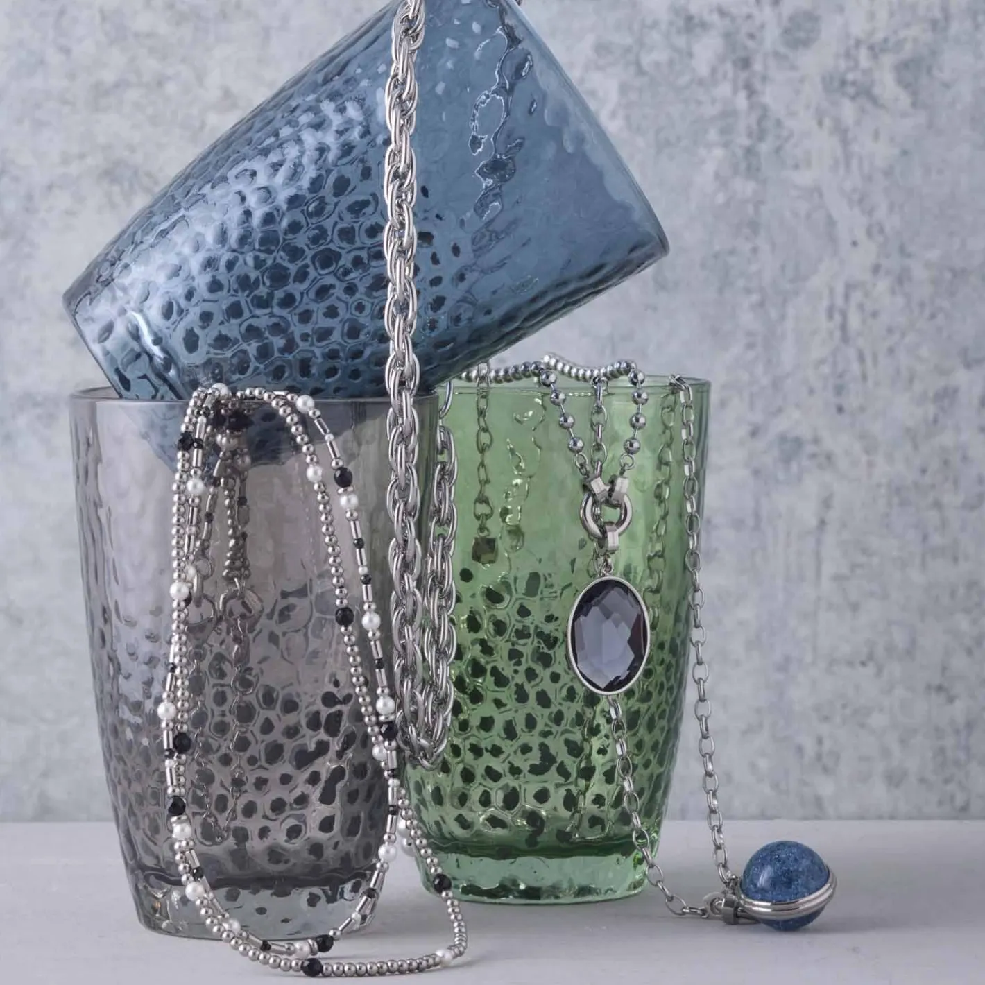 Kristallglas, Edelstahl 316l, Muscheln