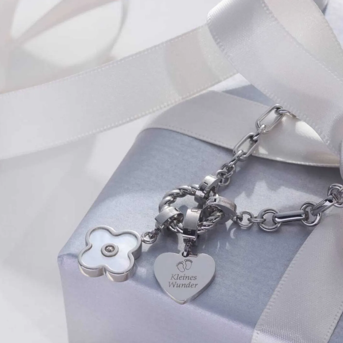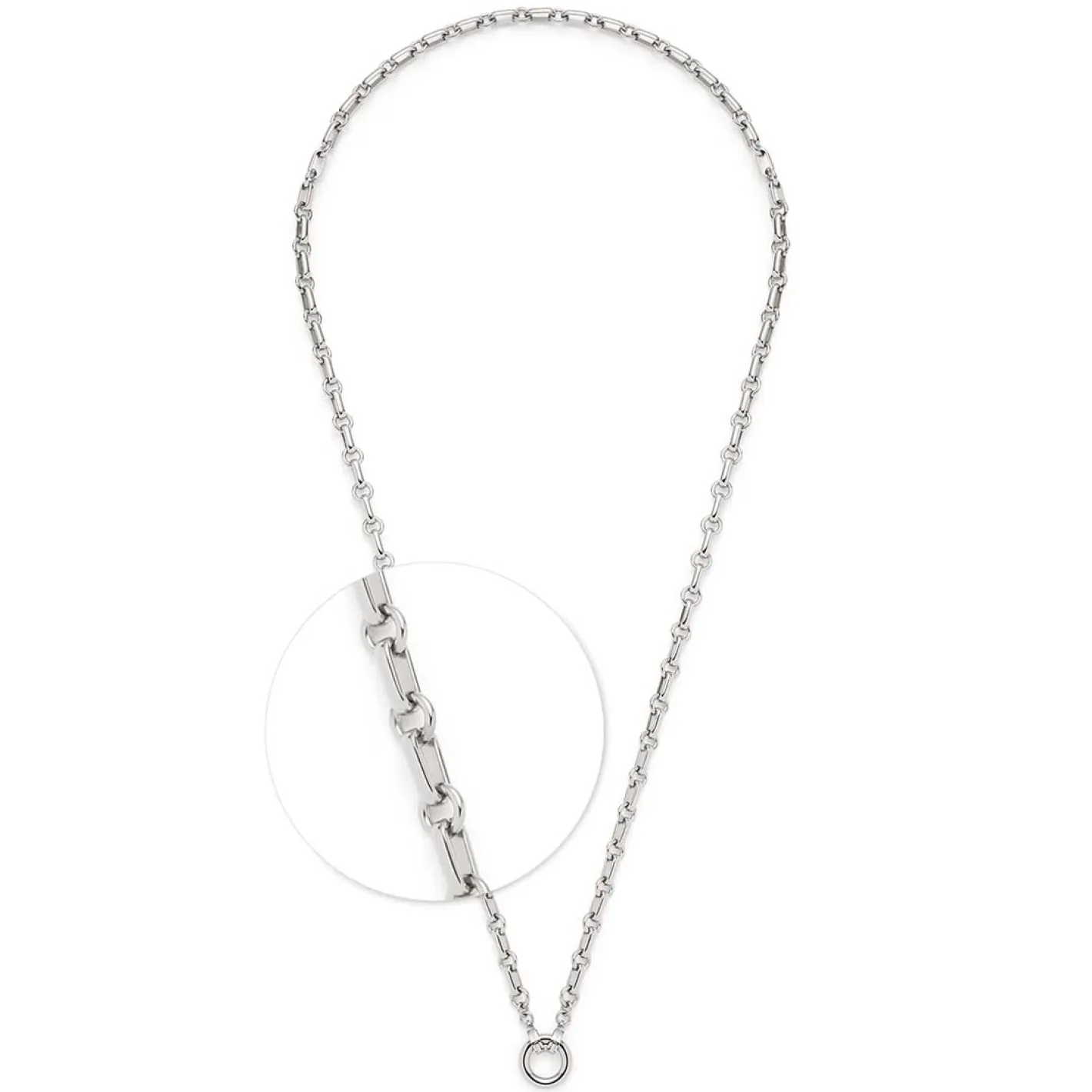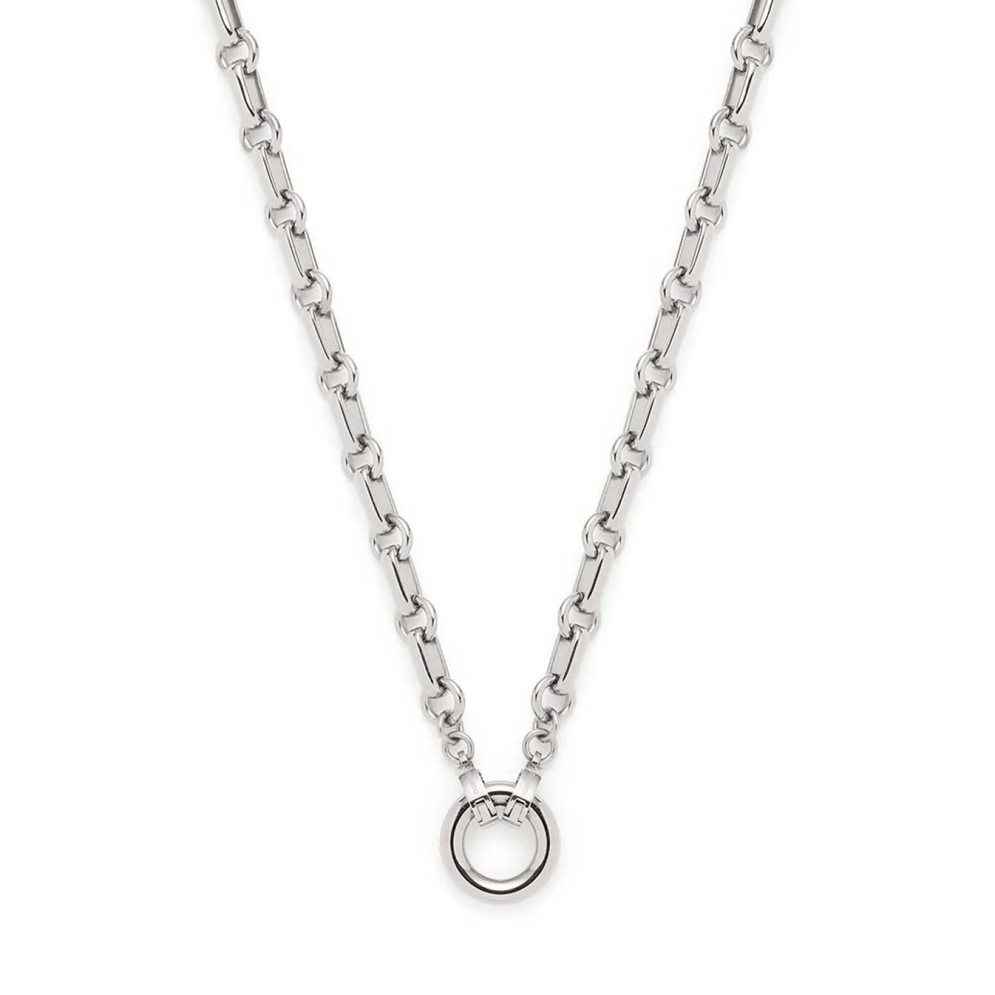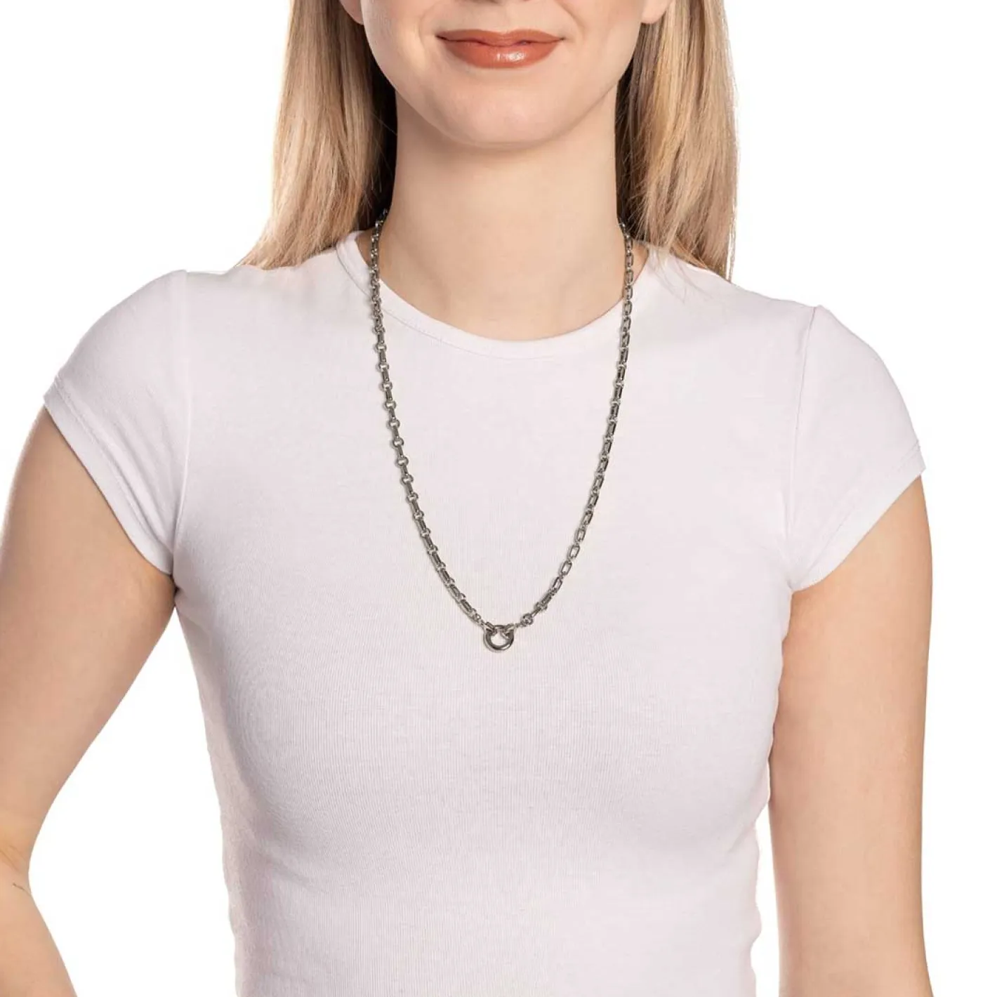 Die Kette YVETTE vereint klaren Stil mit edlem Glanz und modernen Formen. Sie besteht aus abwechselnd länglich-ovalen und runden Kettengliedern, die dem Design Tiefe und Struktur verleihen. Der schlichte, polierte Edelstahlring bildet den Mittelpunkt der Kette und kann dank der Clip&Mix-Funktion individuell mit einem oder mehreren Anhängern kombiniert werden. So kannst du die Kette jederzeit an deinen persönlichen Stil anpassen – ob dezent im Alltag oder auffällig mit einem Clip für besondere Anlässe. Der hochwertige Edelstahl sorgt für langlebige Qualität und angenehmen Tragekomfort. Die Kette YVETTE ist ein echtes Styling-Must-have mit endlosen Kombinationsmöglichkeiten.