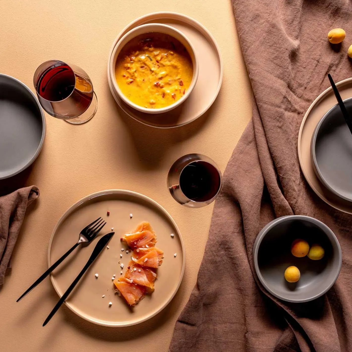 Der Teller ROMA in der zauberhaften Farbe Apricot ist dein idealer Begleiter für stilvolle Tischarrangements. Lass dich von seiner eleganten Lässigkeit und der zurückhaltenden Schönheit in Apricot verführen. Diese Serie bietet insgesamt vier wundervolle Farbtöne, die du nach Belieben kombinieren kannst, immer mit einem harmonischen Gesamteindruck. Die matte Außenseite verschmilzt perfekt mit dem glänzenden Inneren und verleiht nicht nur ästhetische Raffinesse, sondern auch praktische Vorteile bei der Handhabung und Nutzung. ROMA Teller repräsentieren mehr als nur Geschirr – sie sind ein Ausdruck deines ausgezeichneten Geschmacks und deiner Liebe zum Detail. Ideal für jeden Anlass, sei es ein gemütliches Familienessen oder eine festliche Tafel. Die Keramik-Kollektion ROMA steht für modernes, harmonisches Design und ist natürlich spülmaschinen- und mikrowellengeeignet. Hier erhältst du 6 Teller in einem warmen Apricot-Ton.