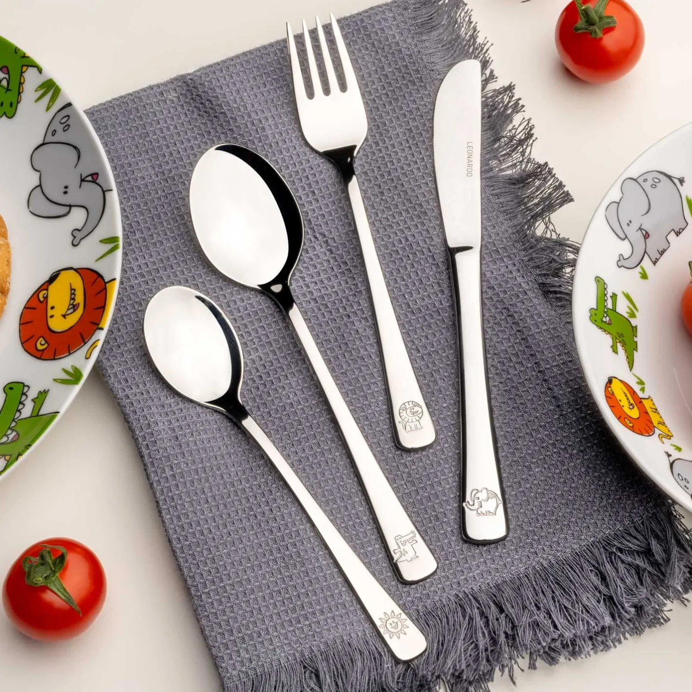 Gestalten Sie Ihren Esstisch edel und erleichtern Sie sich den Alltag mit diesem tollen Besteck aus der Serie BAMBINI. Mit seiner harmonischen Form wirkt dieses Besteck sehr verträumt. Es ist in einem edlen silbernen Farbton gehalten. Gestalten Sie das tägliche Leben ganz nach Ihrem Geschmack und belohnen Sie sich mit dem, was Ihnen gefällt – mit LEONARDO. Besonders alltagstauglich: Das BAMBINI Besteck ist spülmaschinenfest. Hier erhalten Sie ein 4-teiliges Set. Am besten nicht mehr lange zögern. Kommen auch Sie in den Genuss dieses wunderschönen silbernen Bestecks. Auch als Geschenk eine ausgezeichnete Wahl!