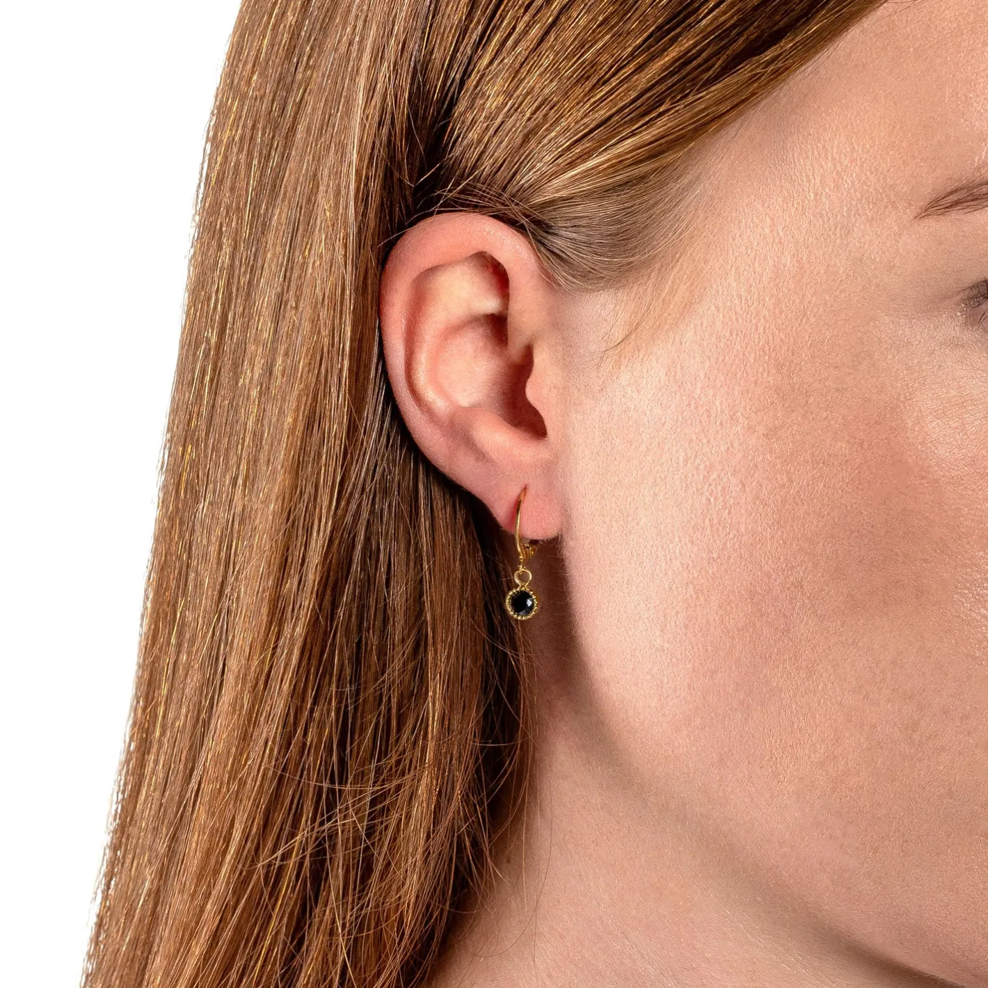 Die kleinen Brisur-Creolen aus goldfarben ionenplattiertem Edelstahl ergeben zusammen mit der passenden Halskette und dem passenden Armband ein sehenswertes Schmuck-Ensemble. Dabei greifen die Ohrringe durch die schwarzen, facettierten Glaskristalle in feiner Edelstahl-Fassung das Thema ihrer zugehörigen Kombipartner auf.