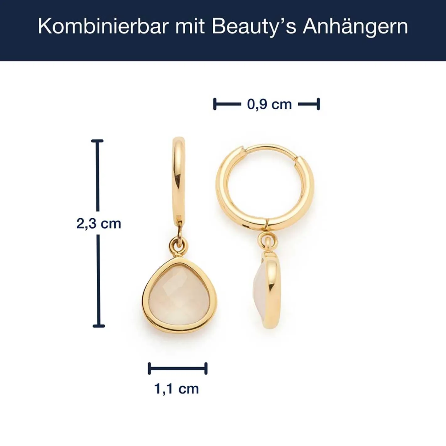 Die Ohrhänger INDRA in Gold verbinden modernes Design mit sanfter Farbigkeit und sommerlicher Leichtigkeit. Die feinen Klappkreolen aus poliertem Edelstahl mit goldfarbener Veredelung tragen jeweils einen blassblauen, facettierten Glasstein als Anhänger, der das Licht elegant reflektiert. Der sanfte Blauton sorgt für einen frischen, klaren Look, während die goldene Fassung Wärme und Eleganz verleiht. Dank des praktischen Klappmechanismus lassen sich die Ohrhänger INDRA einfach anlegen und angenehm tragen. Sie ergänzen sowohl Alltagslooks als auch elegante Outfits perfekt und harmonieren ideal mit der Kette INDRA oder dem ARMBAND INDRA. Ein Schmuckstück, das Leichtigkeit, Stil und feine Farbnuancen perfekt vereint.