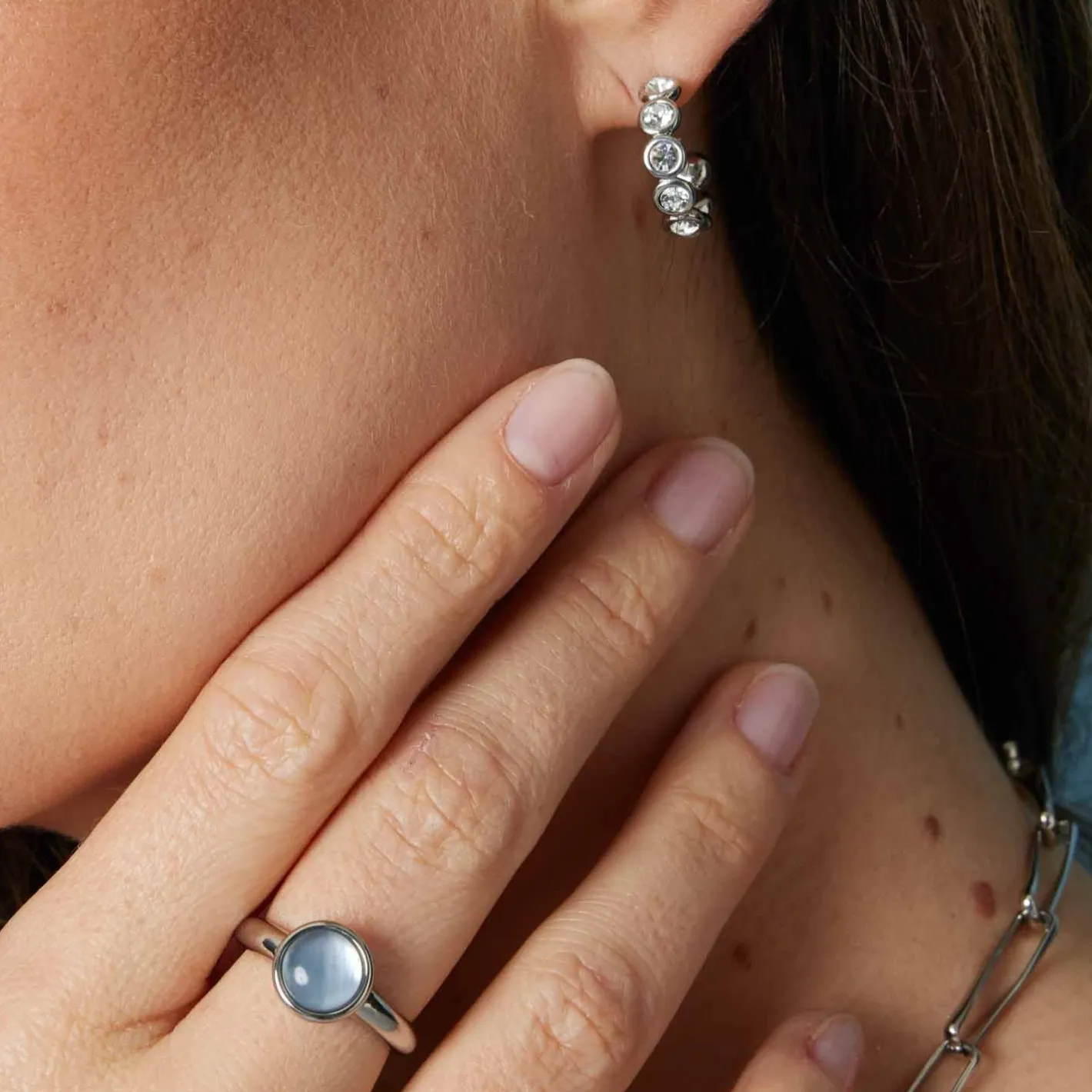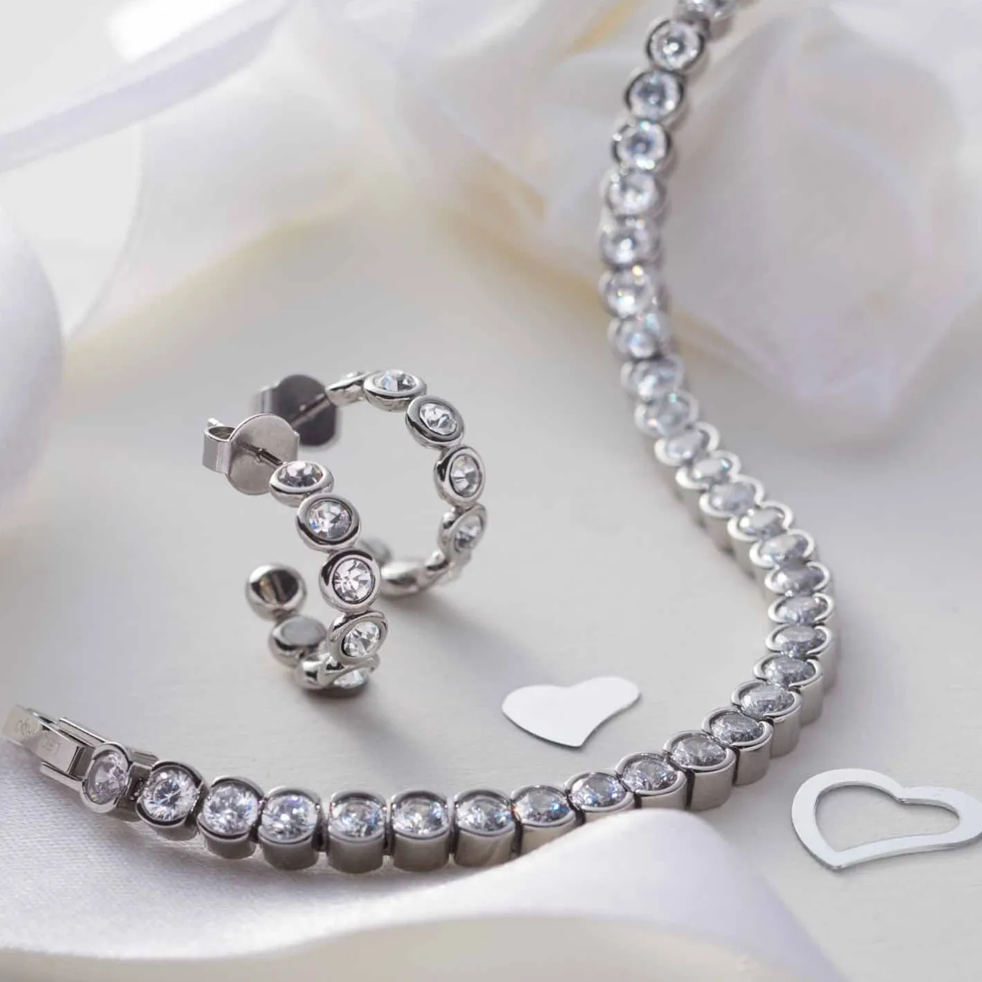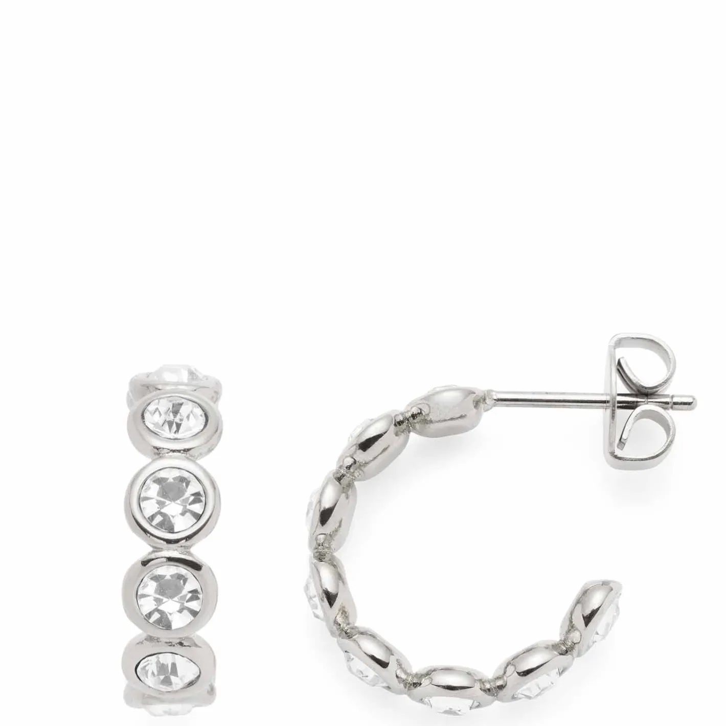 Klein, aber fein – getreu diesem Motto präsentieren sich die Ohrstecker. Ähnlich wie bei dem Armband reihen sich bei der Steck-Creole in Memoire-Optik auch weiße Zirkonia Steine aneinander. Mit ihrer zart funkelnden Optik lassen sich die Ohrstecker mit diversen Stilrichtungen kombinieren – von elegant bis klassisch.