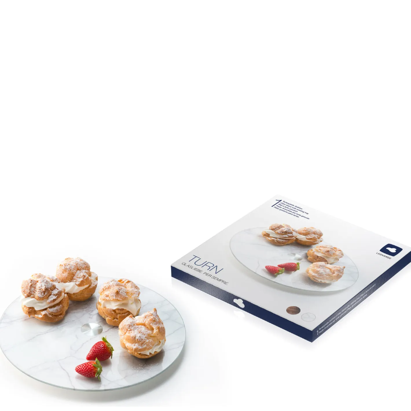 Gestalten Sie Ihren Esstisch wunderschön und erleichtern Sie sich den Alltag mit dieser tollen Platte aus der Serie TURN. Diese runde Platte ist ein absolutes Must-Have und besticht mit ihrem edlen weißen Farbton. Verwöhnen Sie sich mit schönen Dingen in Ihrem Alltag – mit LEONARDO. Die Servierplatte vereint Form und Funktion: Die klassische Marmoroptik setzt Torten, Gebäck oder Käse perfekt in Szene. Die Drehfunktion bringt das richtige Stück immer an die richtige Stelle. Da sollten Sie nicht länger warten! Kommen auch Sie in den Genuss dieser wunderschönen weißen Platte!