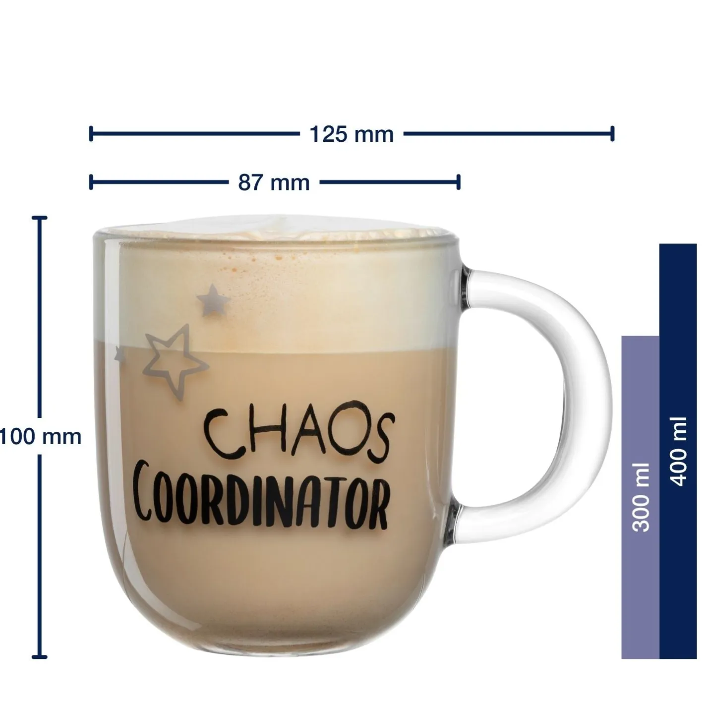 Bist du bereit, das Chaos zu koordinieren? Unsere exklusive Glastasse mit schwarzer Aufschrift ‚CHAOS COORDINATOR‘ ist das perfekte Geschenk für alle, die das tägliche Durcheinander in eleganter Ordnung bewältigen. Die hochwertige Glastasse verleiht deinem Morgen einen Hauch von Stil, während du dich auf das kommende Chaos vorbereitest. Ob im Büro oder Zuhause, diese Tasse ist ein humorvolles Statement und ein praktischer Begleiter für Kaffee, Tee oder andere Getränke. Überrasche deine Freunde, Kollegen oder dich selbst mit dieser einzigartigen Tasse, die dein organisatorisches Können und deinen Sinn für Spaß zum Ausdruck bringt.