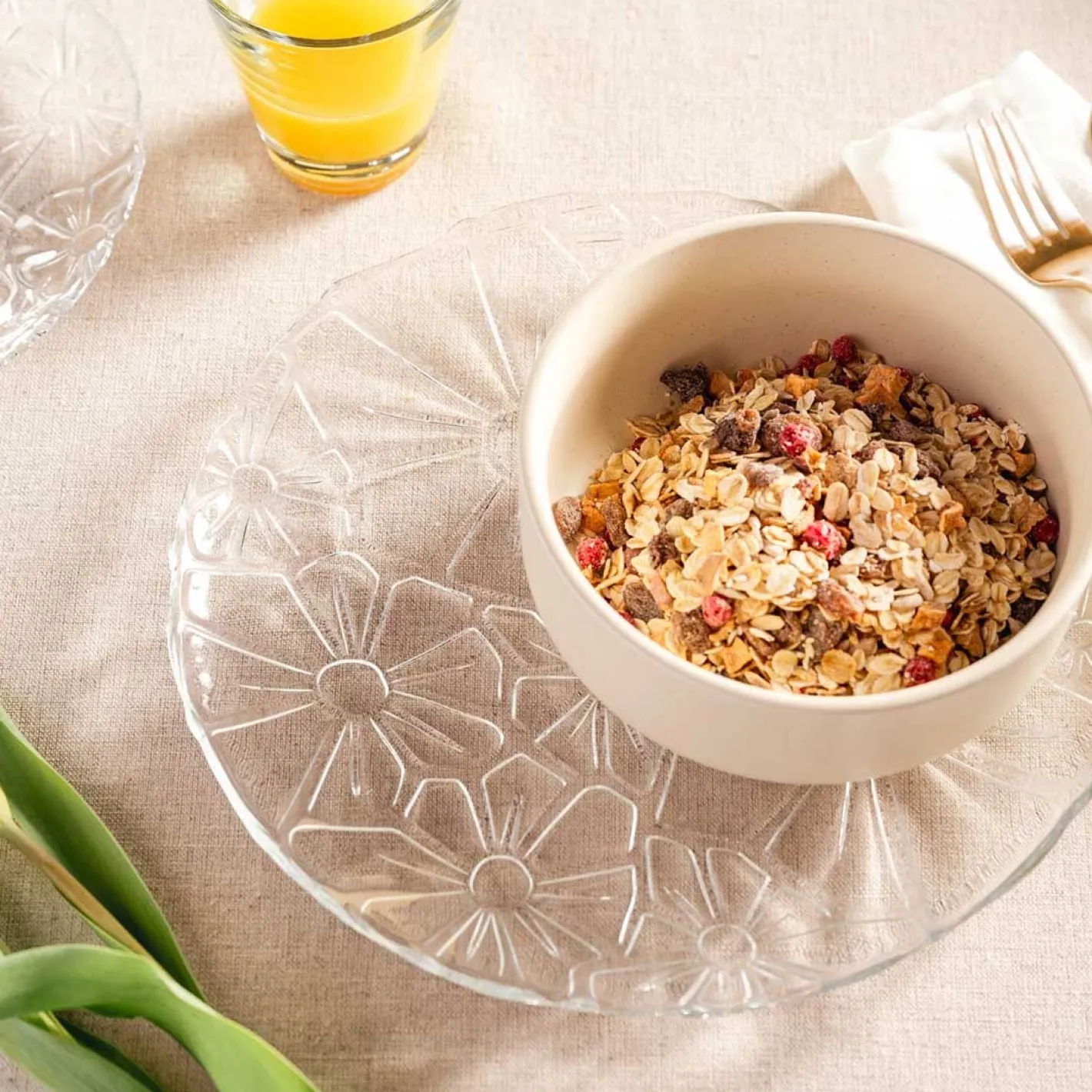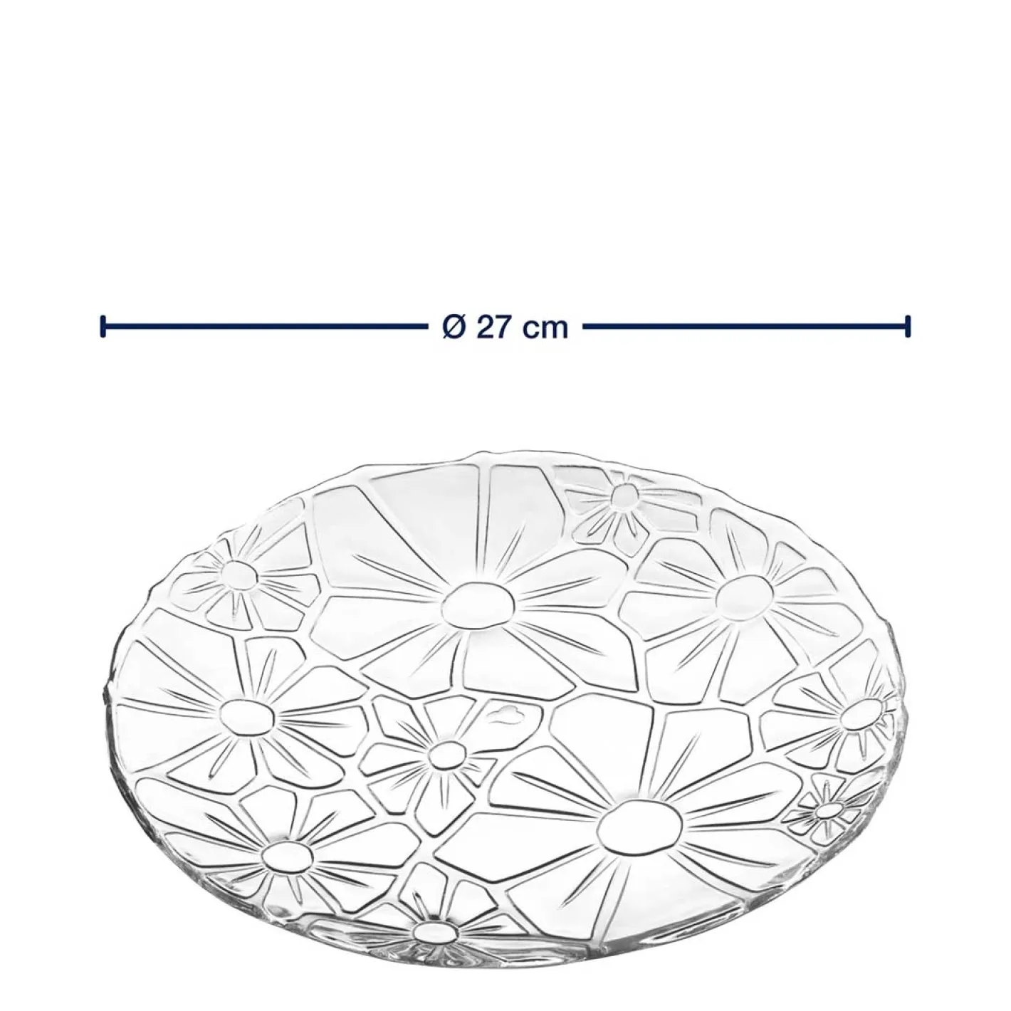 Der Teller GIORNO mit einem Durchmesser von 27 cm vereint modernes Design und Funktionalität. Aus klarem Glas gefertigt, besticht er durch ein elegantes, zeitgemäßes Blütenrelief, das jedem Tisch eine besondere Note verleiht. Die runde Form macht ihn vielseitig einsetzbar, ideal für festliche Anlässe oder den täglichen Gebrauch. Kombinieren Sie ihn mit anderen Elementen der GIORNO-Serie für ein harmonisches Gesamtbild. Ein Must-Have für stilbewusste Genießer!