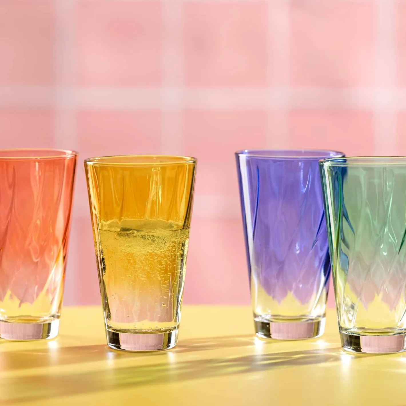 Hol dir jetzt das Trinkglas TWIST in hellem Rot! Mit seinem konischen Design und dem innen gedrehten Muster verleiht es deinem Tisch eine stilvolle Note. Perfekt für den täglichen Gebrauch, ist dieses Glas robust und spülmaschinenfest. Genieße deine Lieblingsgetränke in diesem wunderschönen Glas, das nicht nur gut aussieht, sondern auch angenehm in der Hand liegt. Ob Wasser, Saft oder ein erfrischender Cocktail V das TWIST Trinkglas macht jeden Schluck zu einem Genuss. Bestelle jetzt und verleihe deinem Zuhause einen Hauch von Moderne und Funktionalität! 4 rote Trinkgläser enthält dieses Set.