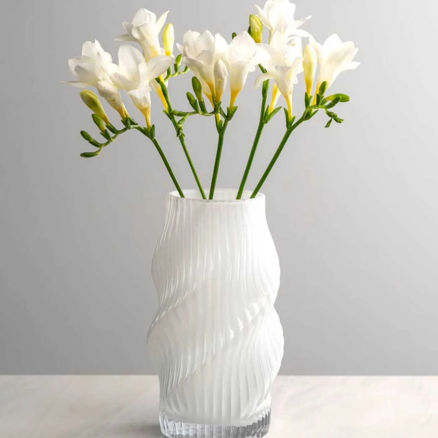 Die Vase VERDI verleiht deinem Zuhause mit ihrer gedrehten Optik und feinen Riffeln eine stilvolle Note. Die weiße Überfangtechnik aus edlem Farbglas sorgt für eine elegante, zeitlose Ausstrahlung. Ob als Einzelstück oder im Ensemble V VERDI ist in drei verschiedenen Größen erhältlich und passt sich perfekt an deine Deko-Ideen an. Ideal für frische Blumen oder als dezentes Design-Highlight zieht die Vase VERDI alle Blicke auf sich. Ein Stück modernes Design, das mit kunstvoller Machart jedem Raum ein exklusives Flair schenkt.