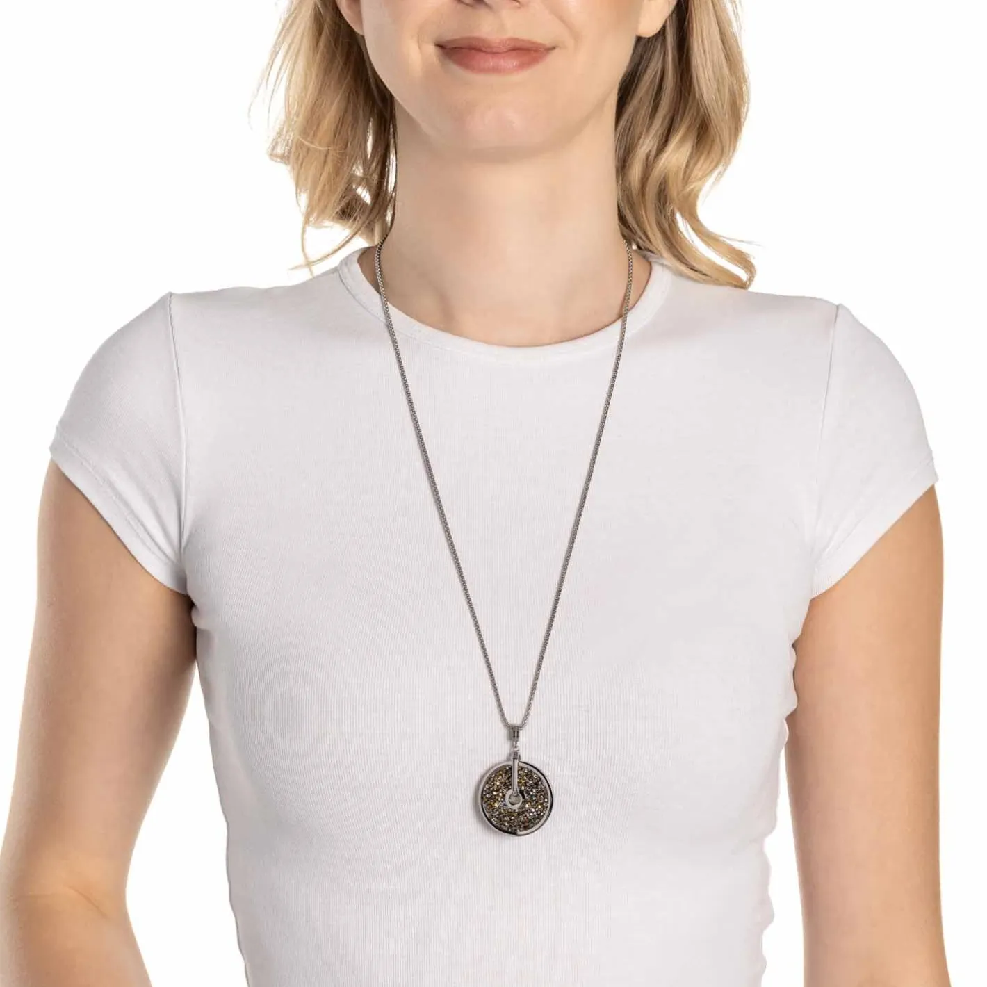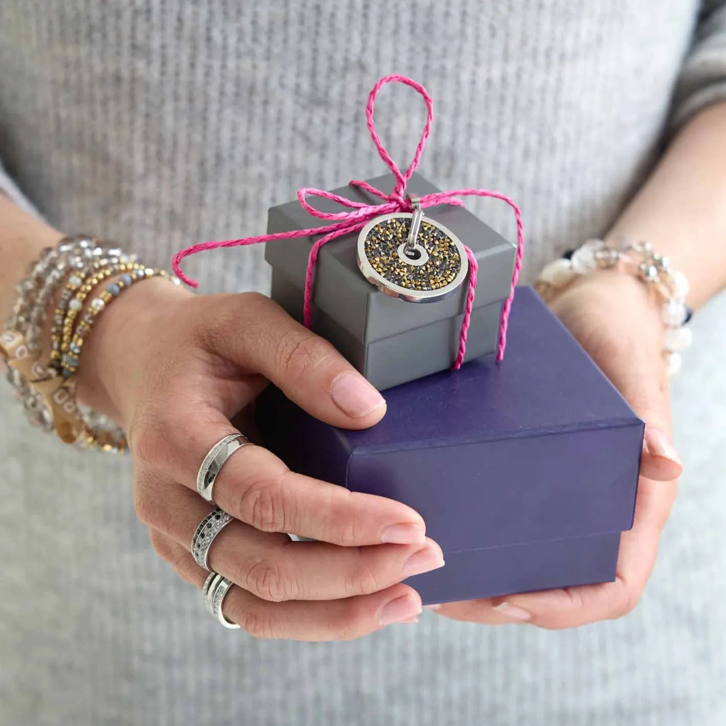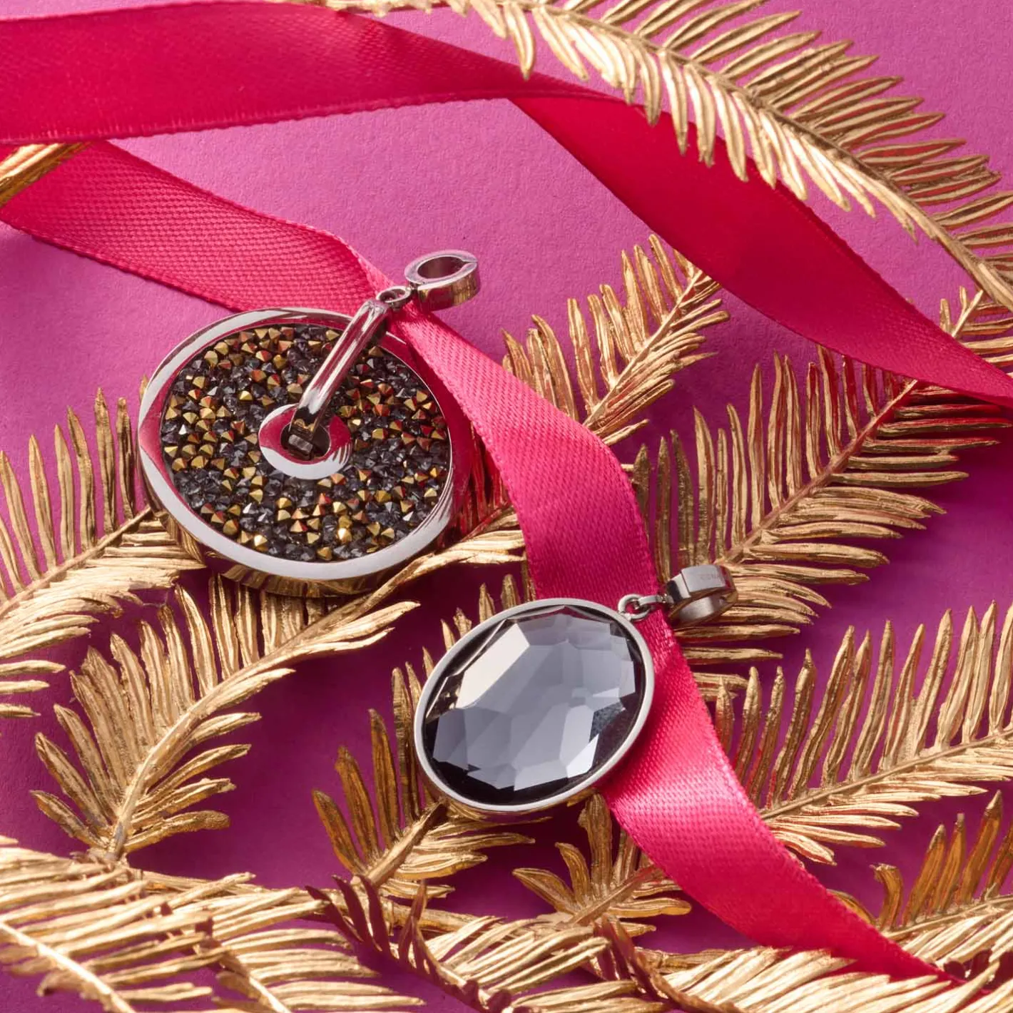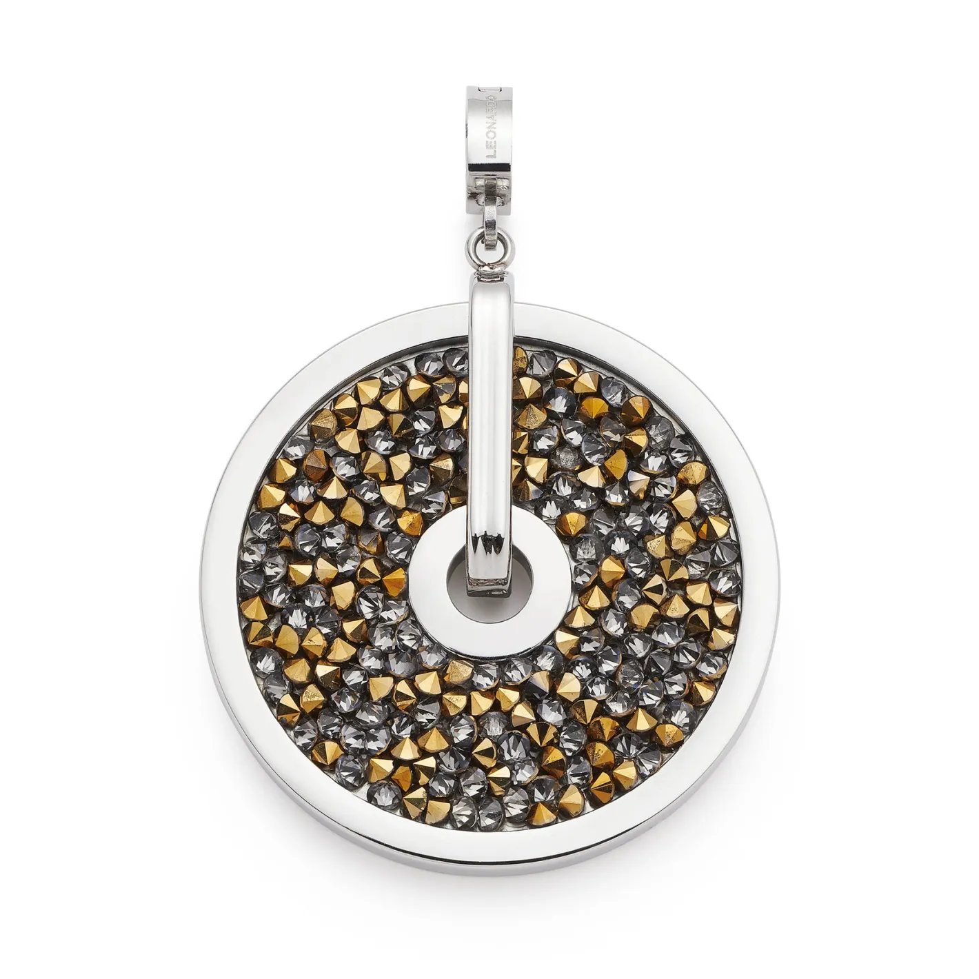 Der Anhänger BLANCA GREY bringt eine besondere Note in Deinen Schmuck-Look. Die runde Scheibe aus poliertem Edelstahl fasziniert mit einer edlen Einlage aus irisierenden Glaskristallen in Grau und Bronze. Ein raffiniertes Detail: Dank der mittigen Spange lässt sich der Anhänger drehen und sorgt so für einen dynamischen, glitzernden Effekt bei jeder Bewegung. Mit dem Clip in Größe M lässt sich der Anhänger flexibel an Deiner Lieblingskette oder einem Armband befestigen und verleiht Deinem Schmuckstück im Handumdrehen ein elegantes Highlight.
