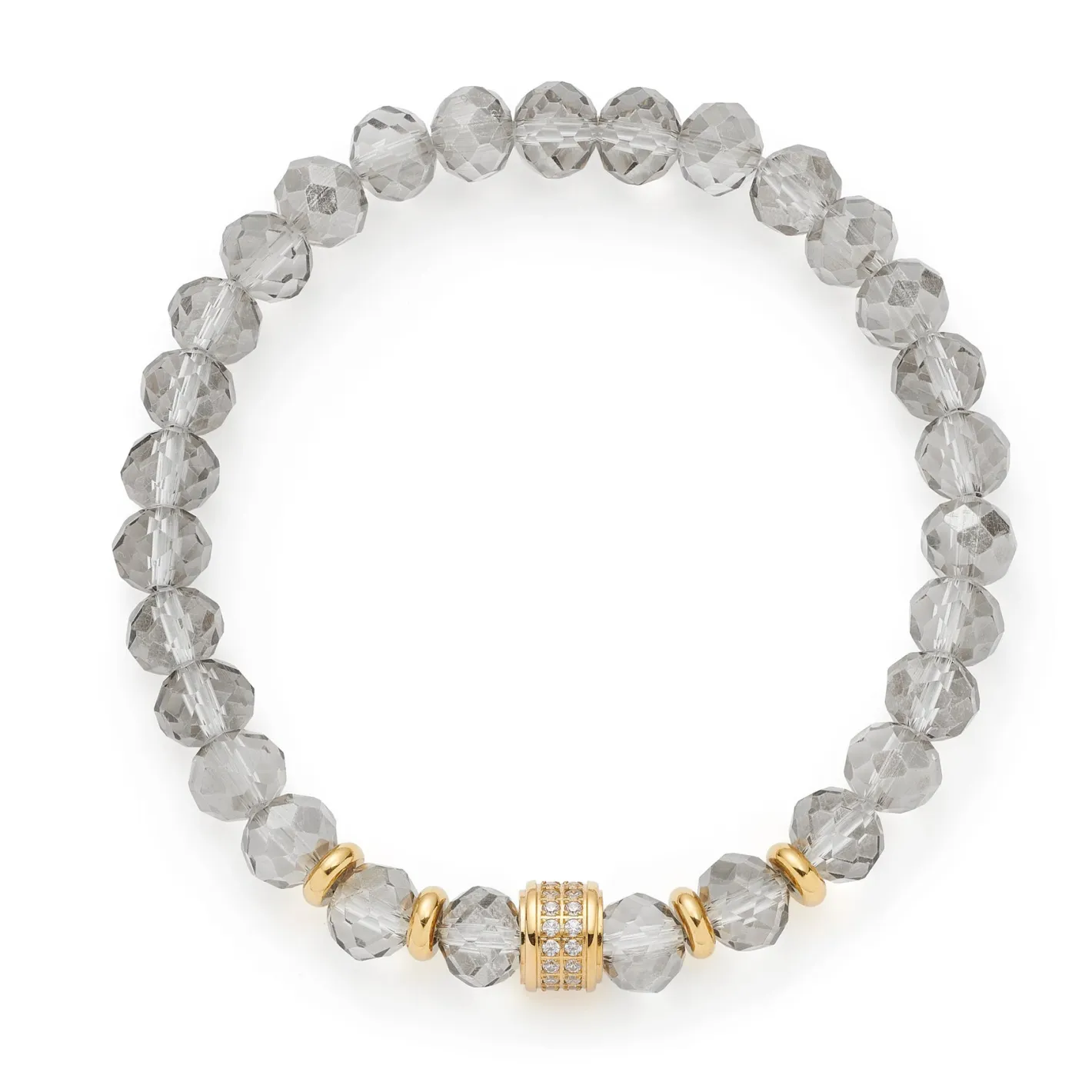 Das Armband BERNA verbindet kraftvolle Eleganz mit lässiger Leichtigkeit. Die markanten Glasschliffperlen in rauchigem Grau erinnern an edlen Rauchtopas und verleihen Deinem Handgelenk eine besondere Ausstrahlung. Ein Pavé-besetztes Goldelement sowie feine Goldscheiben setzen funkelnde Akzente und unterbrechen die Perlenreihe auf stilvolle Weise. Dank des flexiblen Zugbands lässt sich der Schmuck mühelos überstreifen – perfekt für einen Hauch von luxuriöser Nonchalance im Alltag oder zu besonderen Anlässen.