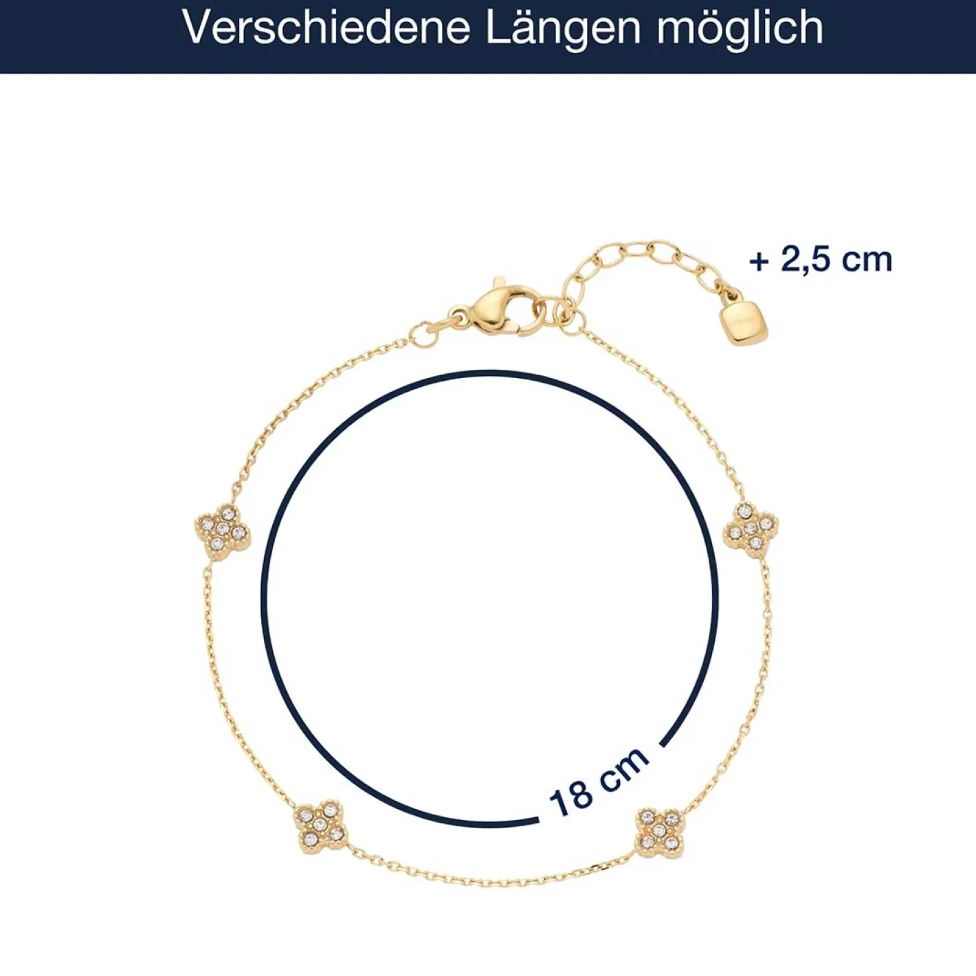 Das Armband LISETTE verleiht Deinem Handgelenk eine romantische Note mit zarten Details. Vier filigrane, blütenförmige Elemente, besetzt mit funkelnden Zirkonia-Steinen, schmücken die feine Ankerkette und sorgen für einen femininen Glanzmoment. Der zart strukturierte Metallrand der Blüten verstärkt die elegante Anmutung und macht das Schmuckstück zu einem zeitlosen Begleiter – ob im Alltag oder zu besonderen Anlässen. Dank Karabinerverschluss und Verlängerungskette passt sich das Armband LISETTE perfekt an Dein Handgelenk an. Erhältlich in Silber oder Gold für Deinen individuellen Stil.