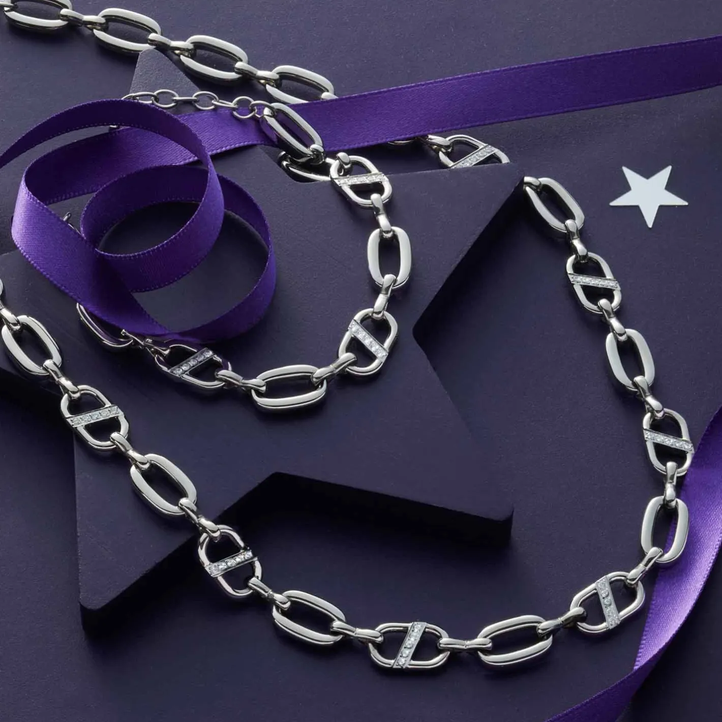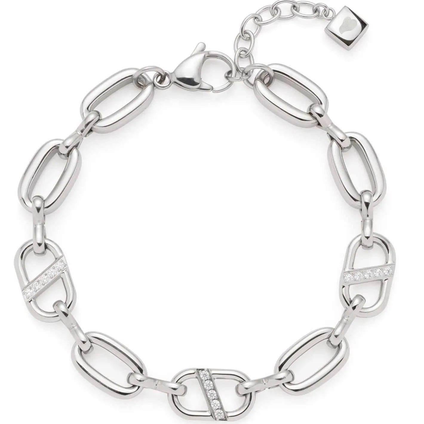 Eine schöne Ergänzung zur passenden Kette Narea ist dieses prägnante Edelstahl-Armband. Wie auch bei der Kette erhält das Armband mit dem Glieder-Design einen echten Trend-Charakter. Kettenglieder mit pavébesetztem, diagonalen Steg wechseln sich mit schlichten Gliedern ab. Ein Zusammenspiel, das mit Modernität, Eleganz und Geradlinigkeit punktet. Mit seinem Karabinerverschluss und einer Verlängerungskette passt sich das Armband optimal an.