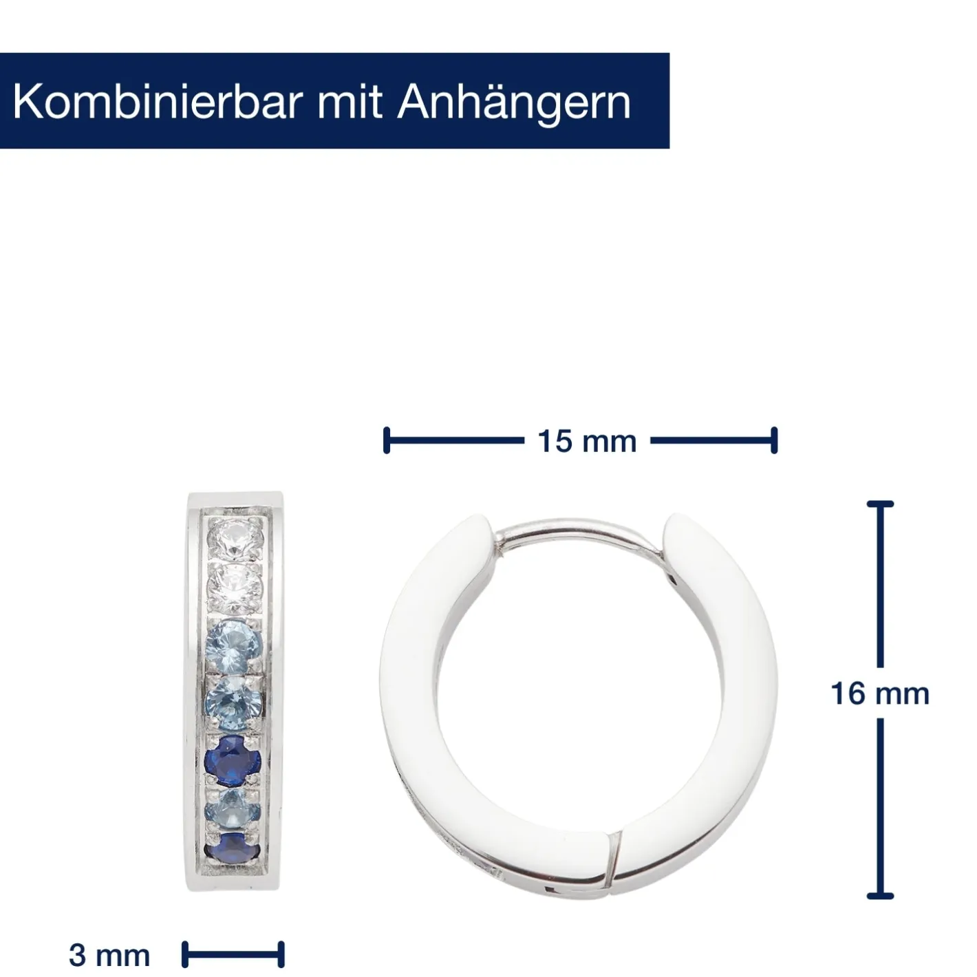Inspiriert von der Schönheit des Meeres zeigt sich diese Creole mit facettenreichen Blautönen. Die unterschiedlich farbigen Zirkonia Steine strahlen im Zusammenspiel mit dem polierten Edelstahl besonders schön. Ein modernes und erfrischendes Update für die sonst so klassisch gehaltene Creole. Mit ihrer kleinen Form fügt sie sich mühelos in deine Outfits ein – ob im Office oder auch am Abend.