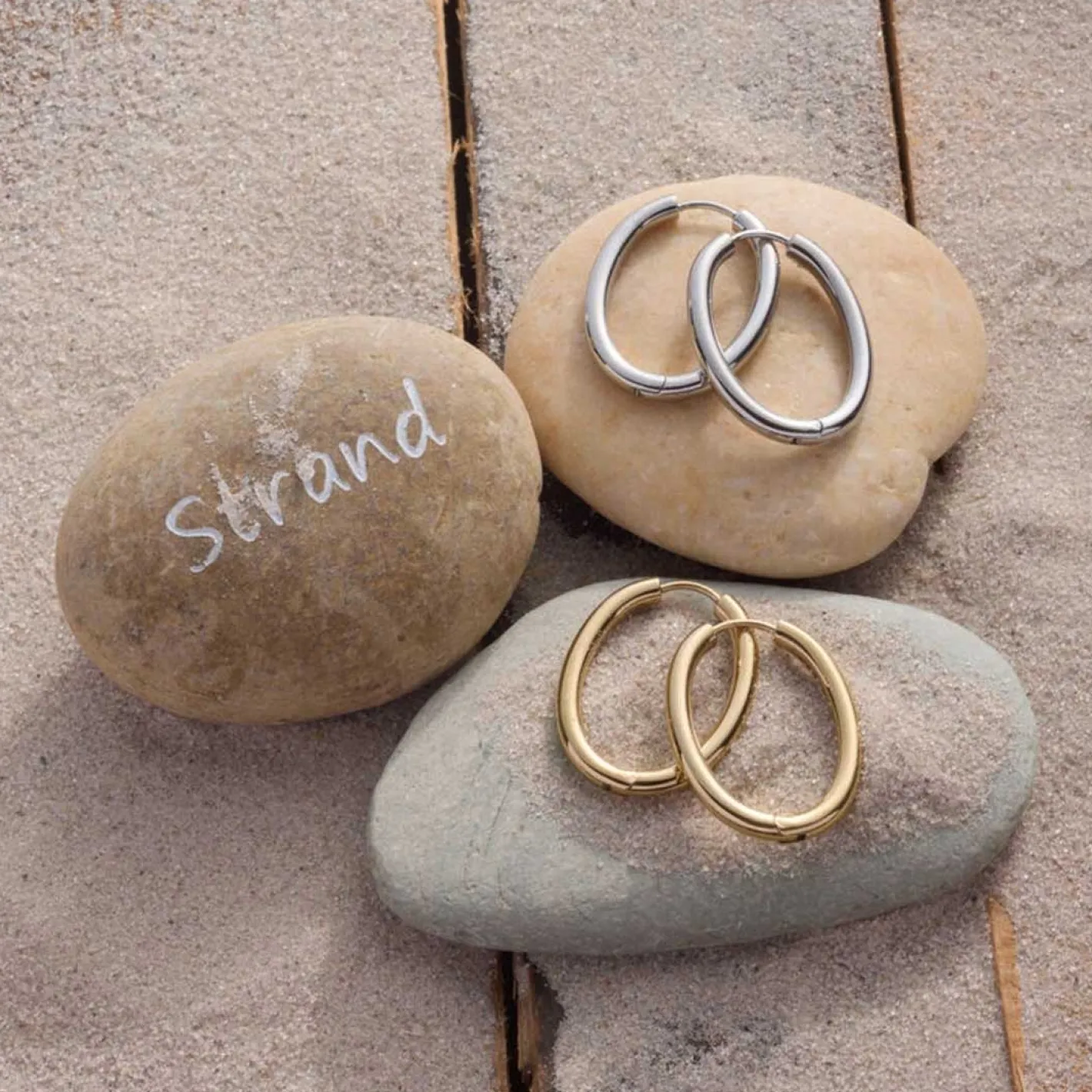 Die Kreole LUZIE überzeugt durch ihre elegante Schlichtheit und ihren warmen Gold-Look, der jedem Outfit eine stilvolle Note verleiht. Die mittelgroße, ovale Form mit rundem Querschnitt sorgt für eine harmonische, feminine Ausstrahlung und macht die Ohrringe zu einem perfekten Allrounder für jeden Tag. Dank des praktischen Klappverschlusses lassen sie sich mühelos anlegen und angenehm tragen. Ob zu lässigen Alltagslooks oder eleganten Outfits – diese goldfarbenen Kreolen setzen dezente, aber wirkungsvolle Akzente. Ihr minimalistisches Design lässt sich vielseitig kombinieren und verleiht jedem Stil einen Hauch moderner Eleganz. Ein zeitloser Klassiker, der in keiner Schmucksammlung fehlen darf.