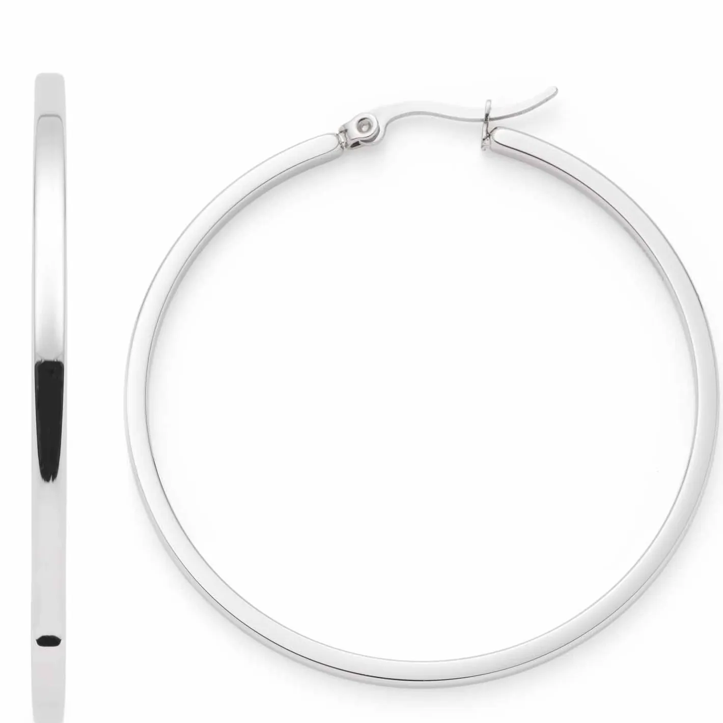 Die Creolen aus Edelstahl liegen mit ihrer Größe absolut im Trend und beweisen das modische Know-how ihrer Trägerin. Das kantige Profil verleiht ihnen einen modernen Twist. Mit ihrem Purismus passen die präsenten und dennoch schlichten Creolen zu wirklich allem. Sie sitzen mit dem rückseitigen Klappbügel außerdem schön dicht am Ohrläppchen.