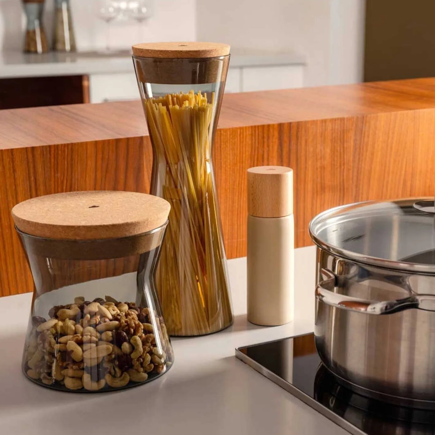 Die Vorratsdose FORMA X ist so schön, dass sie nicht in den Schrank muss! Mit ihrem eleganten Grauton und dem stilvollen Korkdeckel ist sie ein echter Hingucker in deiner Küche. Ob für Kaffee, Zucker, Nudeln oder andere Zutaten – die Dose sorgt nicht nur für Ordnung, sondern auch für einen Hauch von Design. Ihre moderne x-Form macht sie zu einem dekorativen Highlight, das sich sehen lassen kann. Erhältlich in verschiedenen Größen, findest du garantiert die ideale Dose für deine Bedürfnisse. Zeig deine Dose stolz und lass sie Teil deiner Küchenästhetik werden!