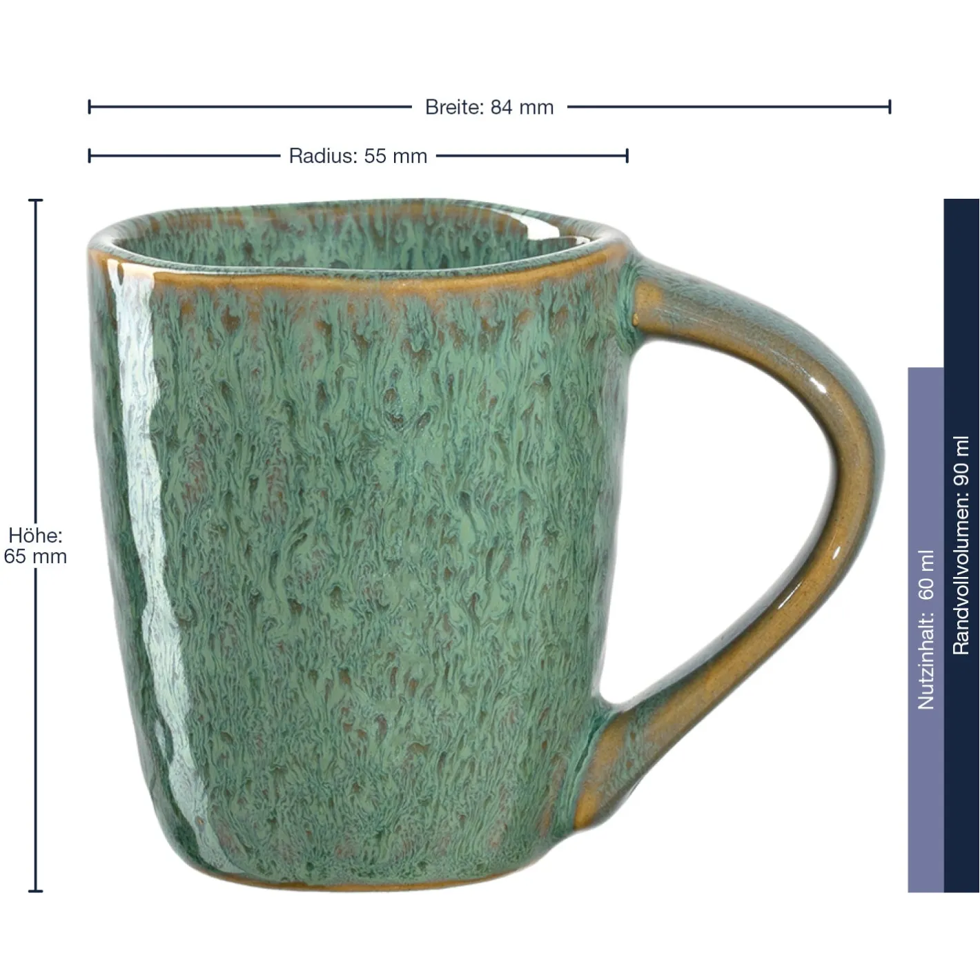 Erleben Sie italienischen Charme bei sich zu Hause und lassen Sie sich mitreißen von der Tasse aus der Serie MATERA. Diese Tasse ist ein absolutes Must-Have und überzeugt mit ihrem modernen grünen Farbton. Mix und Match, die Produkte und Farben sind miteinander kombinierbar. Durch die handaufgetragene Effektglasur ergeben sich einzigartige Farbverläufe und individuelle Muster. Dennoch passen alle Stücke harmonisch zusammen. Das Geschirr ist schnittfest, mikrowellengeeignet und spülmaschinenfest und zudem noch ideal geeignet für schicke Dekorationen. MATERA ist ideal für den gedeckten Tisch – ob morgens, mittags oder abends, ob für Heißgetränke oder die Zubereitung und das Genießen von Speisen. Am besten nicht mehr lange zögern! Kommen auch Sie in den Genuss dieser wunderschönen grünen Espressotasse!