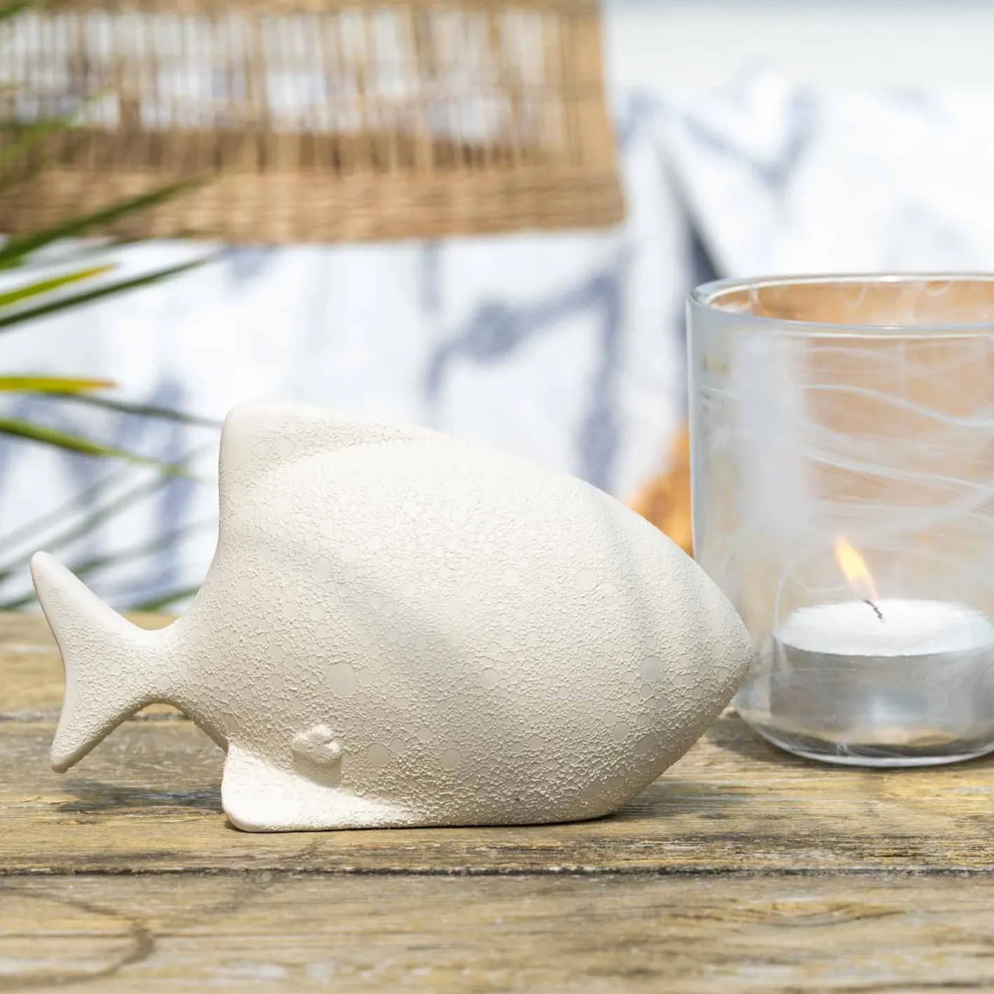 Tauche ein in sommerliche Erinnerungen mit unserer zauberhaften Keramikfigur V einem Fisch, der an spielerische Sandgebilde am Strand erinnert. Die kunstvolle Gestaltung fängt die Leichtigkeit des Urlaubs ein und bringt die entspannte Atmosphäre des Strandes direkt zu dir nach Hause.Diese einzigartige Keramikfigur ist ein perfektes Dekorationsstück für jeden Raum, das den Geist des Sommers und die Freude am Strand in dein Zuhause bringt. Lass dich von dieser besonderen Figur verzaubern und spüre die warmen Sandkörner zwischen deinen Zehen.