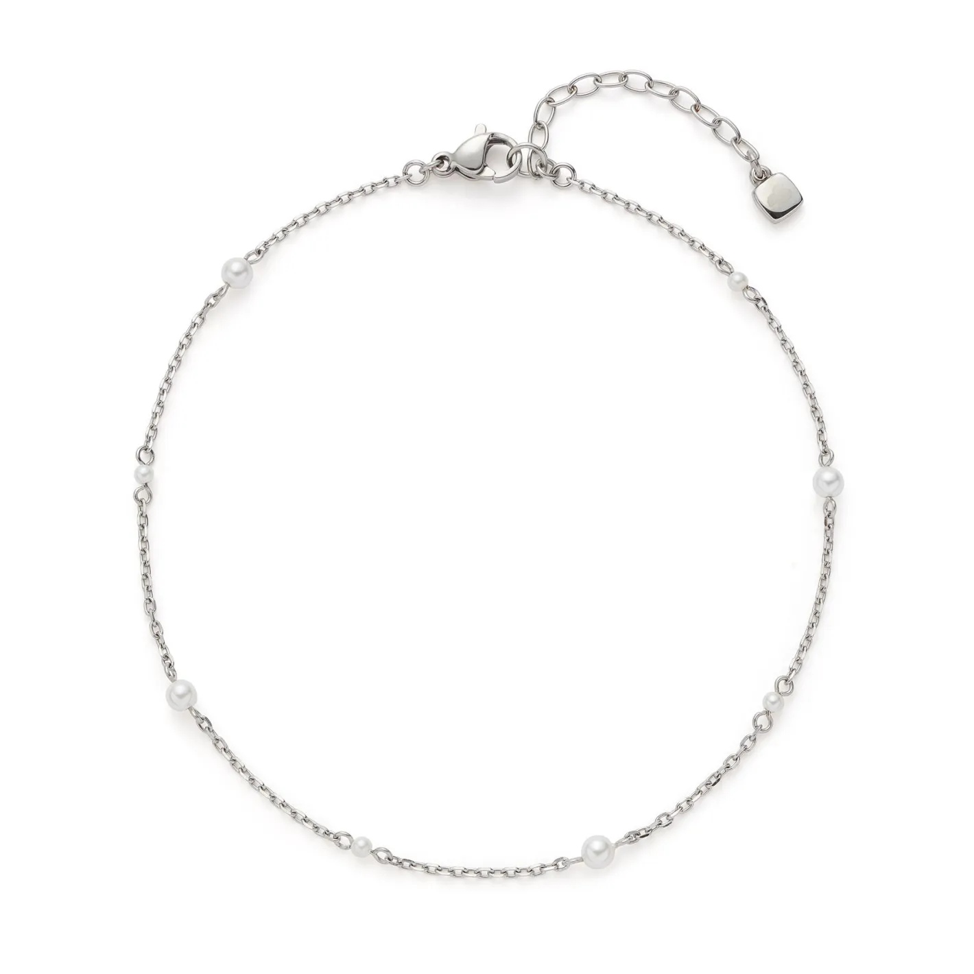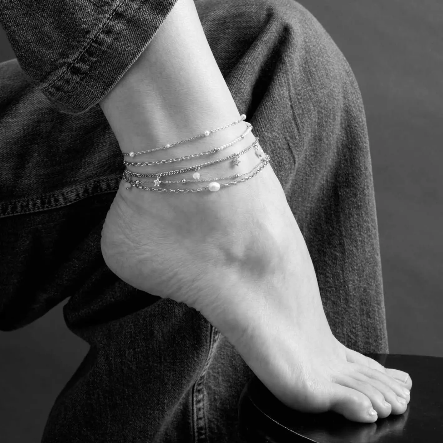 Bringe dezenten Glanz an dein Fesselgelenk – mit dieser zeitlosen Fußkette. Weiße Perlen in zwei Größen reihen sich in regelmäßigen Abständen entlang der zarten Ankerkette und sorgen für eine stilvolle Ausstrahlung. Ob als schlichter Blickfang oder kombiniert mit weiteren Kettchen für einen entspannten, modernen Look – dieses Accessoire ist vielseitig und verleiht jedem Sommeroutfit das gewisse Etwas. Ein Must-have für sonnige Tage!