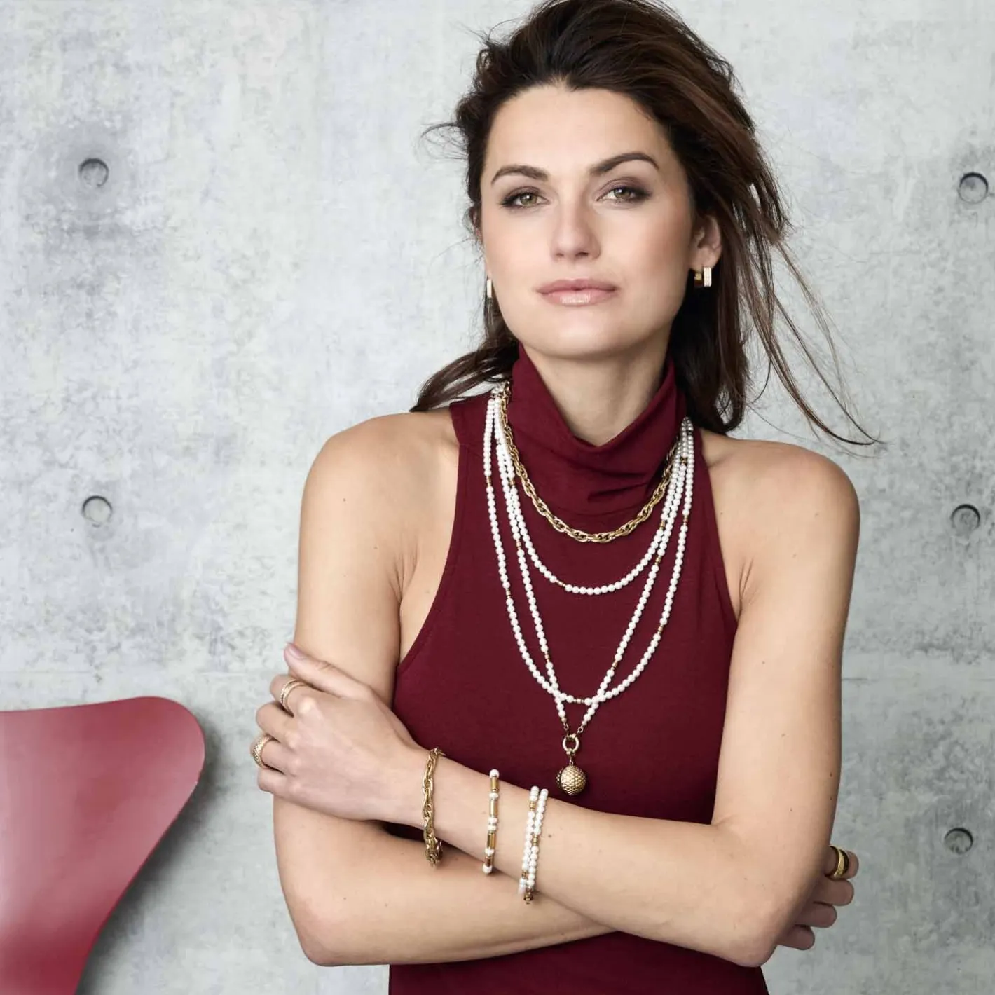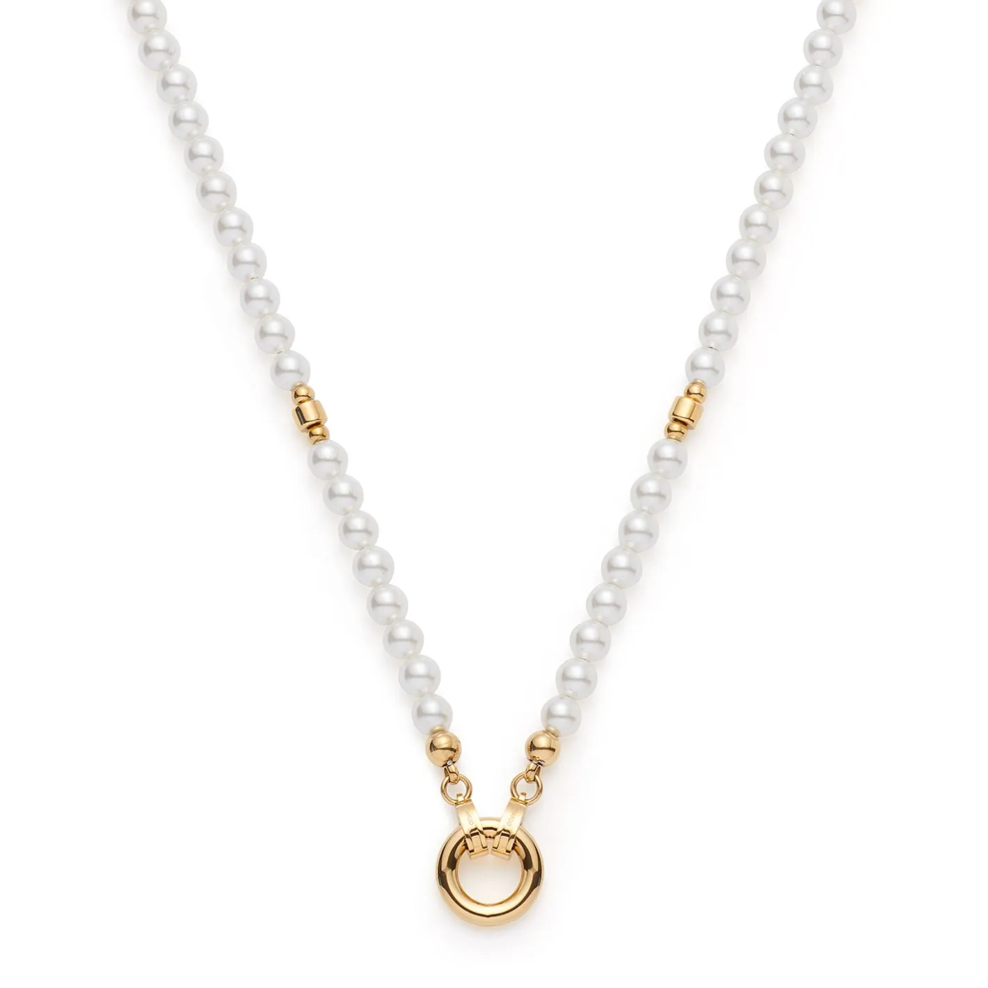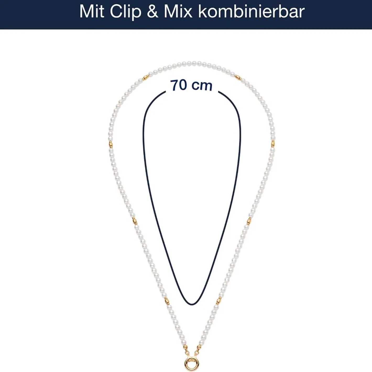 Die Halskette CHRISTA vereint klassische Eleganz mit moderner Wandelbarkeit. Natürlich wirkende, weiße Perlen reihen sich harmonisch aneinander und werden durch feine Goldelemente stilvoll unterbrochen. Die zarten Walzen und kleinen Goldkugeln verleihen dieser langen Perlenkette einen Hauch von Glamour, ohne aufdRinglich zu wirken. Mit der Clip & Mix Funktion gestaltest Du Deinen Look individuell – zwei Clips halten den schlichten Ring, an dem sich Deine LieblingsAnhänger befestigen lassen. Ob klassisch getragen oder kreativ erweitert – CHRISTA ist das perfekte Accessoire für zeitlose Auftritte.