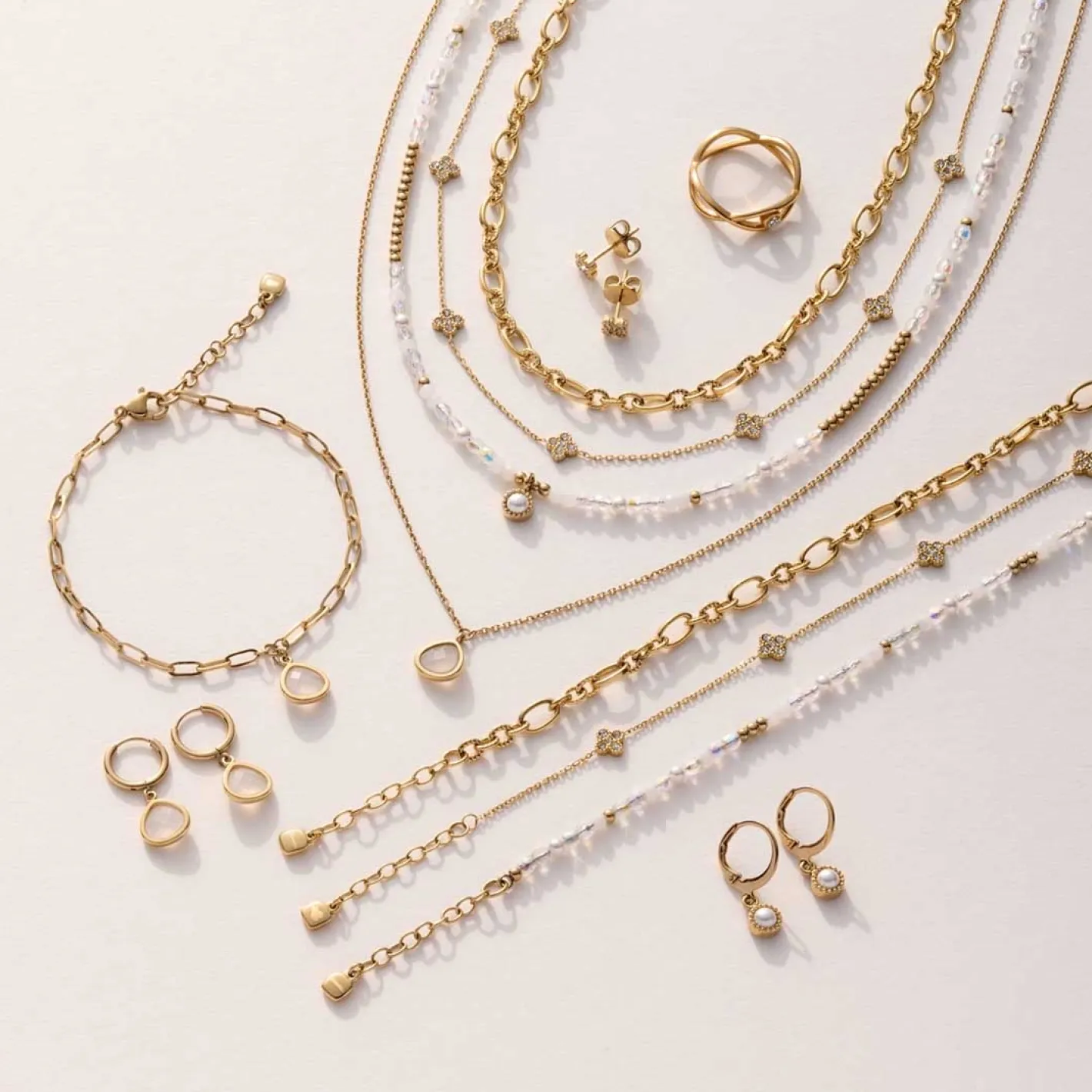 Die Halskette INDRA in Gold verkörpert elegante Schlichtheit und sommerliche Leichtigkeit. Die kurze, geschliffene Ankerkette aus poliertem Edelstahl mit goldfarbener Veredelung trägt einen weißen, facettierten Glasstein in Form eines rundlichen Dreiecks. Durch seine transluzente Optik fängt der Stein das Licht sanft ein und verleiht der Kette einen feinen, edlen Glanz. Der schmale Rahmen aus Gold unterstreicht das minimalistische Design und sorgt für eine moderne, klare Linienführung. Mit dem Karabinerverschluss und der Verlängerungskette lässt sich die Länge individuell anpassen. Die Halskette INDRA ist ein vielseitiger Begleiter – perfekt für den Alltag, als dezentes Highlight zu sommerlichen Outfits oder als Geschenk mit stilvoller Ausstrahlung.