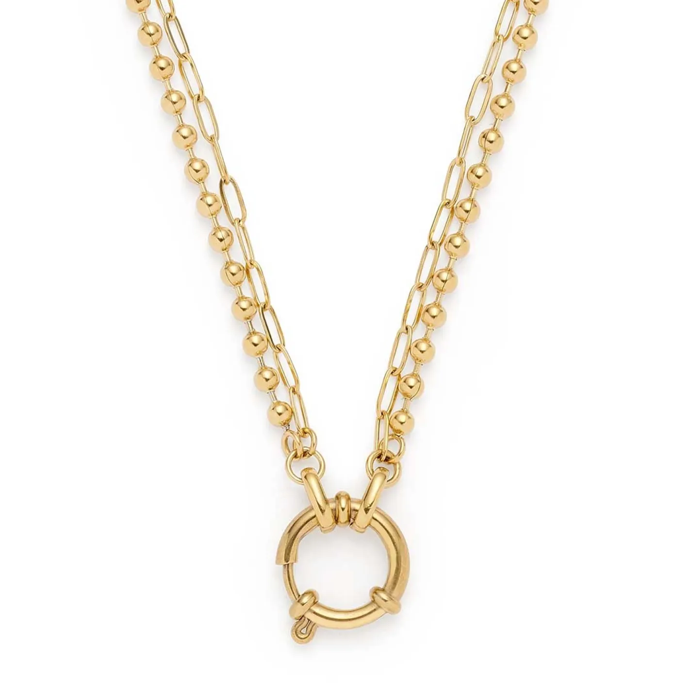 Die Kette LIZZY vereint modernes Design mit einem Hauch Retro-Charme. Sie besteht aus einer feinen Paperclip-Kette mit länglich-ovalen Gliedern und einer zusätzlichen Kugelkette, die das Design doppellagig und besonders ausdrucksstark macht. Der große, runde Federingverschluss ist nicht nur funktional, sondern auch ein stilvolles Statement-Detail – er kann sowohl vorne als auch seitlich getragen werden. Dank der Clip&Mix-Funktion kannst du einen oder mehrere Anhänger aus der LEONARDO Kollektion einfügen und so immer wieder neue Looks schaffen. Diese Kette ist das perfekte Accessoire für alle, die Abwechslung und Individualität lieben.