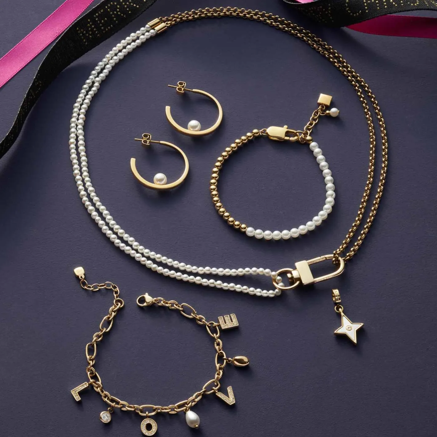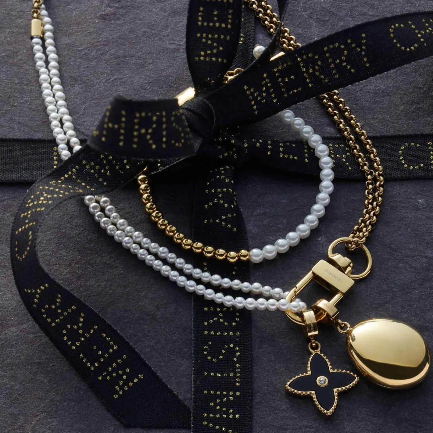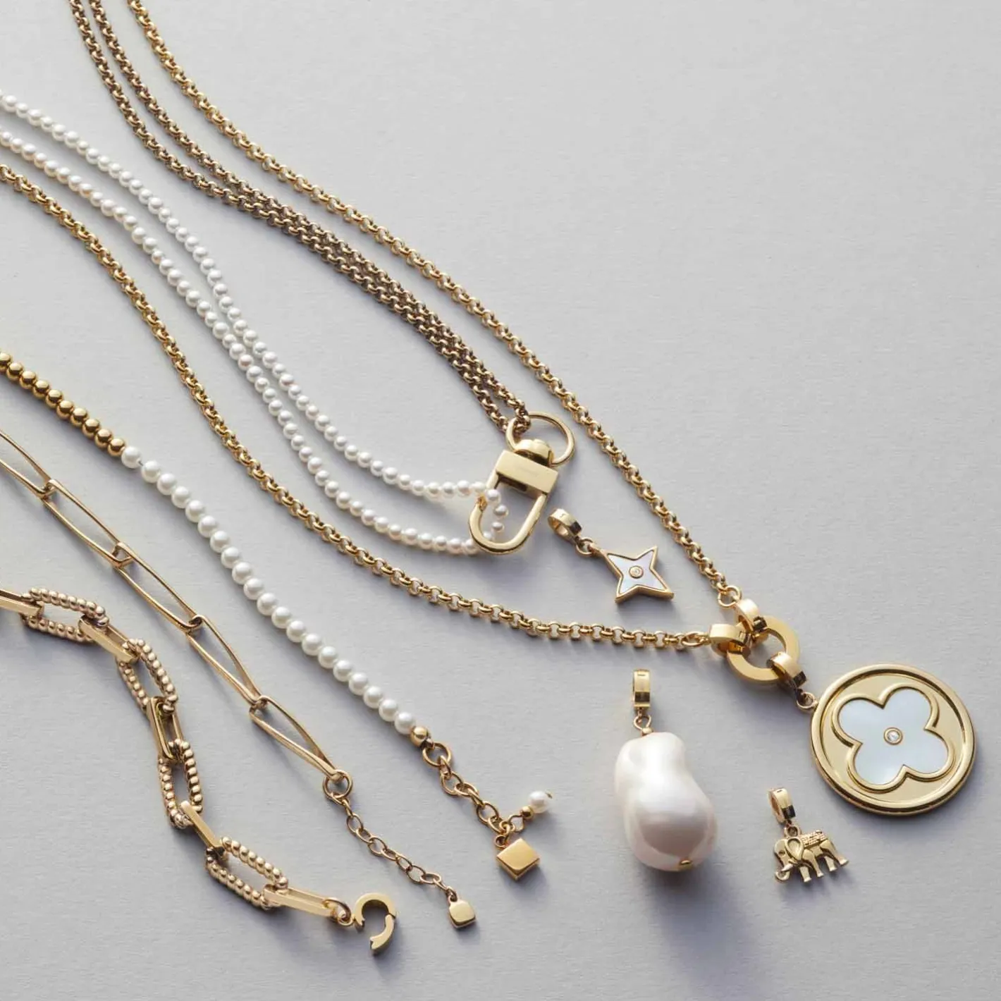 Edelstahl oder Perlen-Optik – bei dieser Kette erübrigt sich die Frage. Sie bietet einfach beide Designs. Die endlose Kette besteht hälftig aus weißer Imitationsperle und Erbskette. Lang getragen lässt sie sich einfach ohne Verschluss über den Kopf ziehen. Aber auch doppelt gelegt in kurzer Länge macht sie eine tolle Figur, dafür einfach in den plakativen Verschluss einhängen. Das Schöne, in den Verschluss mit seinen großen Öffnungen kann zusätzlich auch noch ein Clip & Mix Anhänger eingefügt werden. Damit ermöglicht diese Kette viele, wunderbare Tragemöglichkeiten und interpretiert den Perlen-Look auf trendbewusste Weise.
