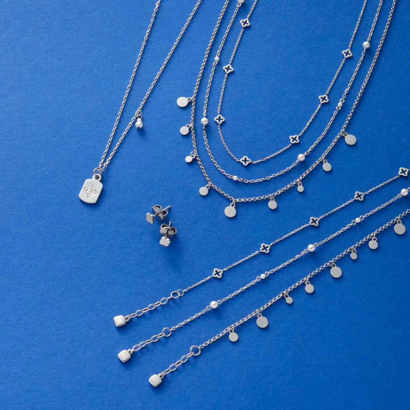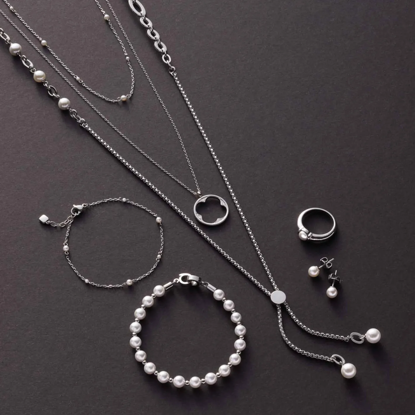 Klassischer Halsschmuck modern interpretiert: In der kurzen Ankerkette mit Karabinerverschluss und Verlängerung sind abwechselnd in gleichen Abständen weiße Perlen in zwei Größen eingesetzt. Die zarte Kette mutet filigran an und wirkt entweder für sich oder in Kombination mit anderen Ketten im modischen Layering-Look. Sie verleiht jedem Dekolleté eine zarte, feminine Ausstrahlung.