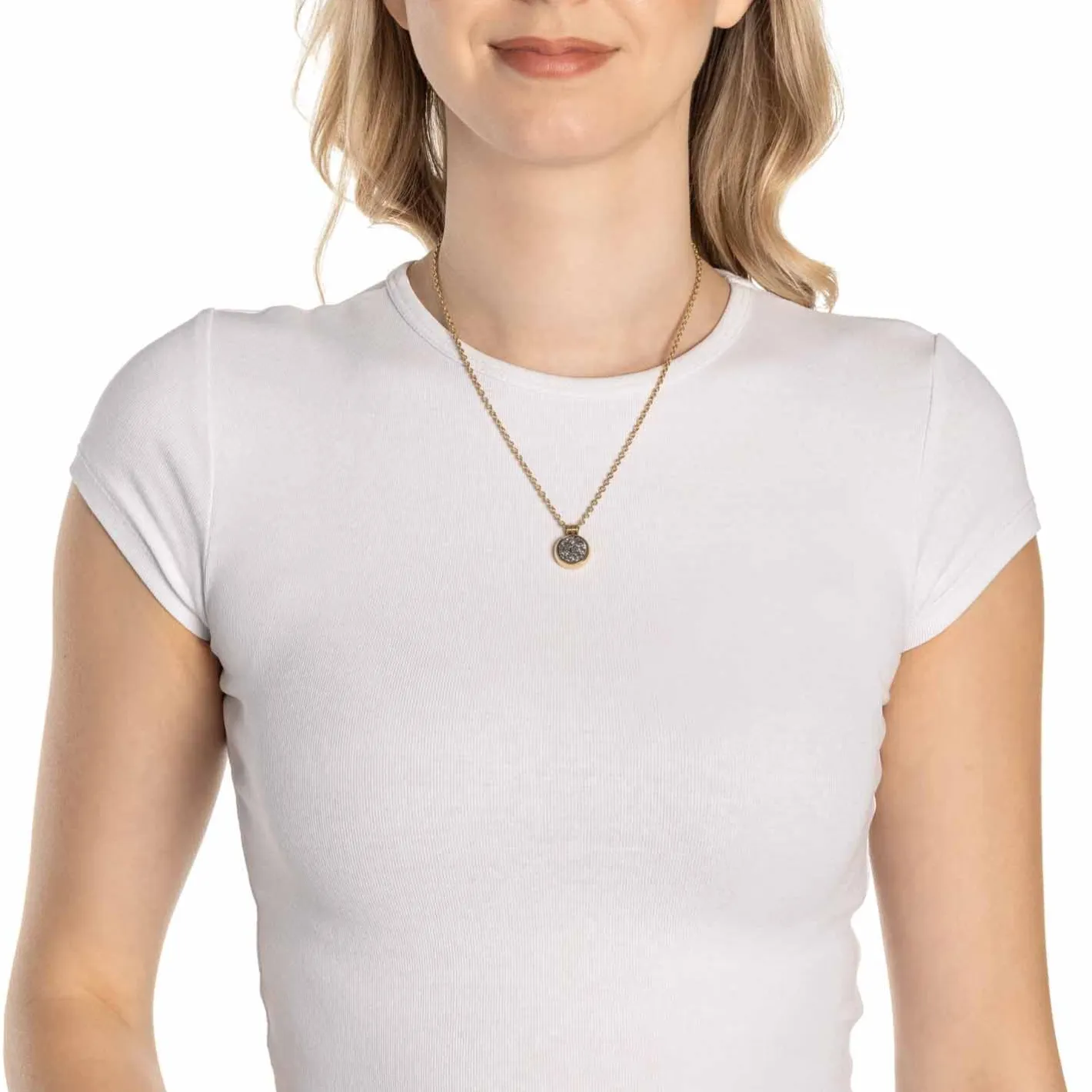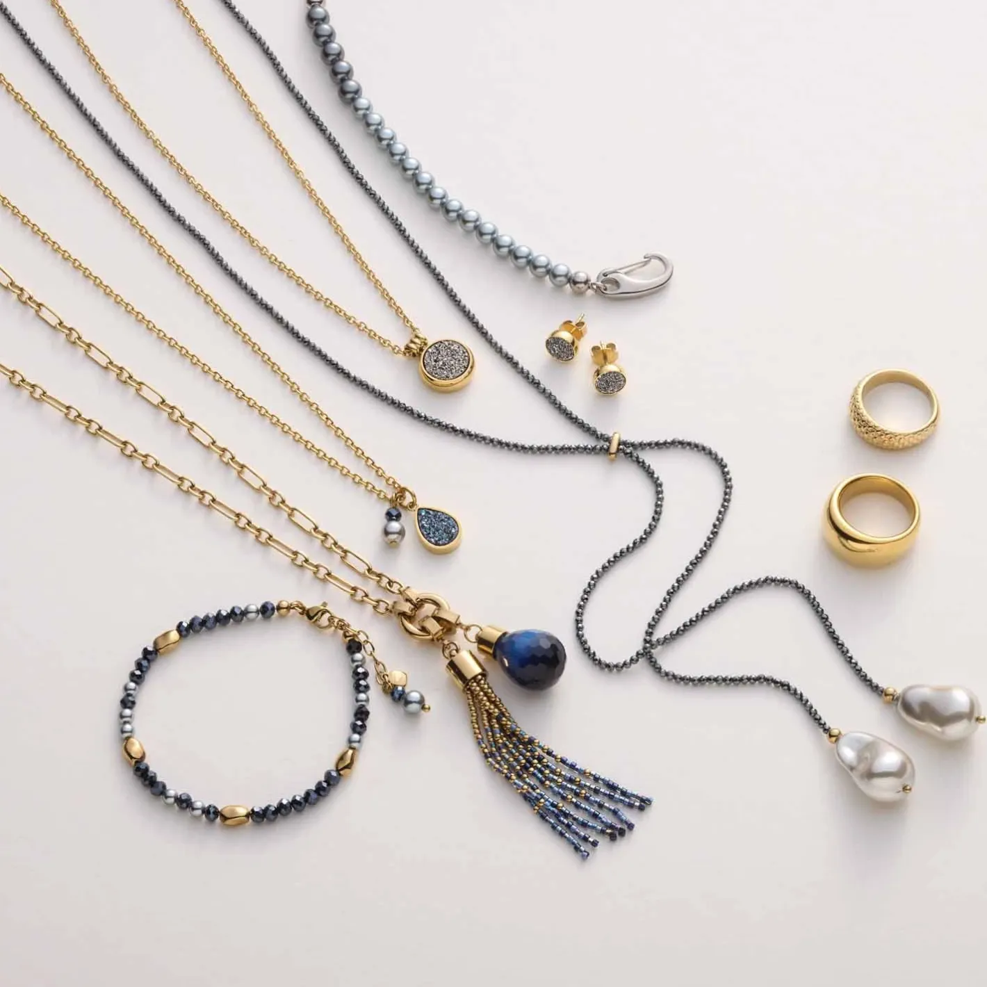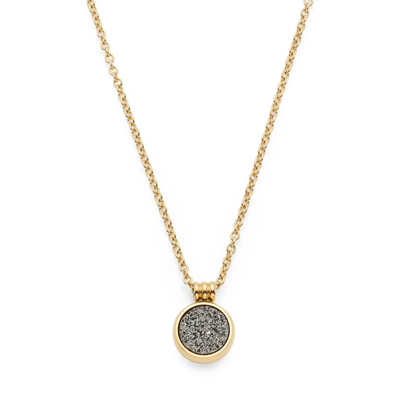 Die Halskette ODELLE verbindet die natürliche Schönheit von Achat mit moderner Eleganz. An der kurzen Weitankerkette hängt ein weich geformter, runder Anhänger, dessen kristalline Oberfläche durch eine Ionenplattierung geheimnisvoll funkelt. Die dreiteilige Aufhängung verleiht dem Design zusätzliche Raffinesse. Ob in schlichter Edelstahl-Optik oder in warmer Goldvariante – diese Kette ist ein stilvoller Blickfang, der sowohl im Alltag als auch zur festlichen Garderobe glänzt. Dank Karabinerverschluss mit Verlängerungskette lässt sich die Länge flexibel anpassen.