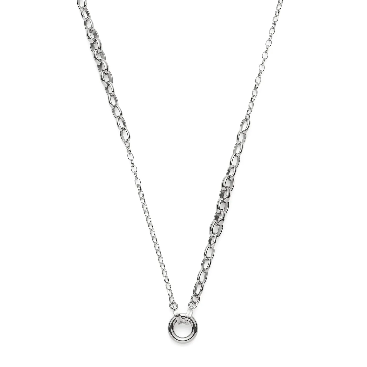 Die Halskette SUZANNE steht für markante Eleganz mit modernem Twist. Ovale Kettenglieder im sanften Größenverlauf wechseln sich harmonisch mit filigranen Weitankerelementen ab und verleihen der langen Kette ihren besonderen Charakter. Zwei dezente Clips halten den schlichten Ring, der sich individuell mit Clip & Mix Anhängern gestalten lässt. Ob als Statement-Piece oder dezent veredelt – SUZANNE passt sich Deinem Stil flexibel an und sorgt für einen ausdrucksstarken Auftritt.