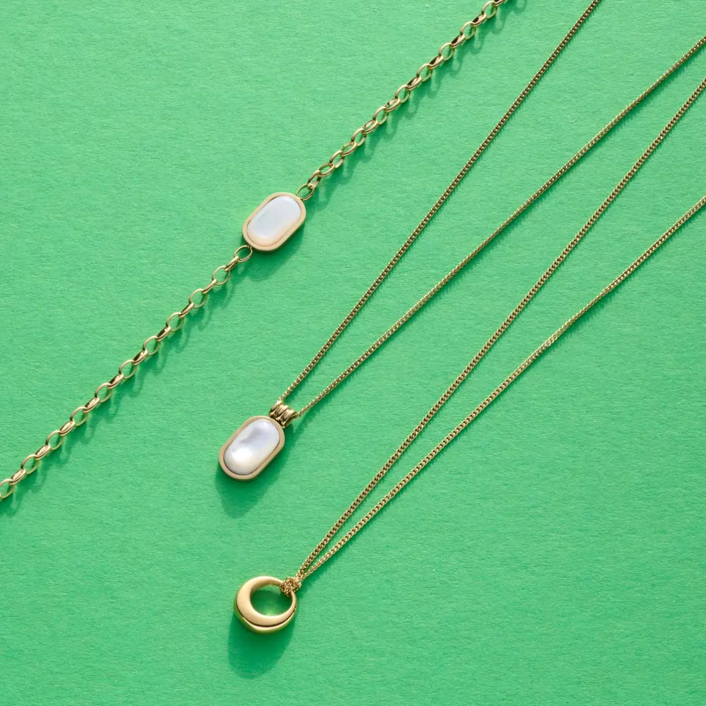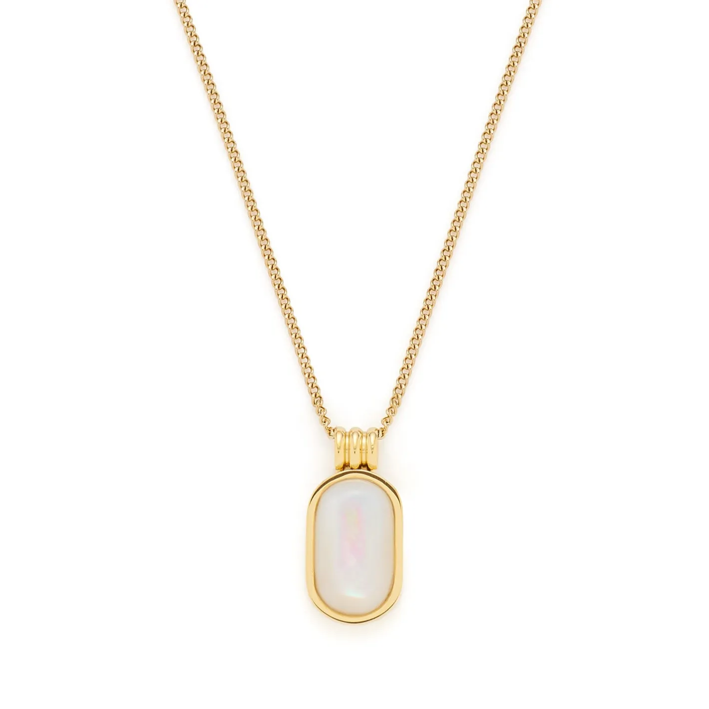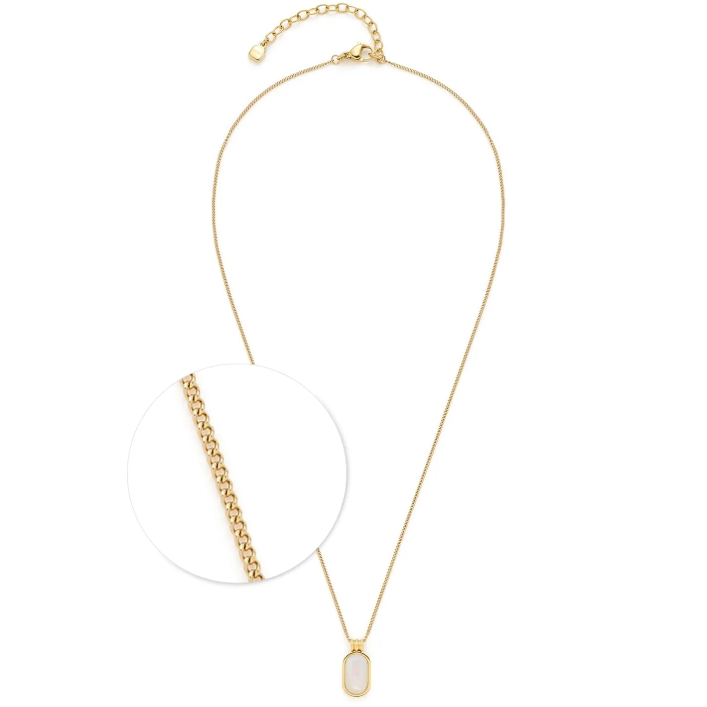 So filigran und fast schon zerbrechlich schön verfeinert diese Kette all deine Looks. Die kurze, feine Panzerkette zeigt sich mit beweglichem, ovalem Perlmutt-Anhänger. Die weiche, organische Form des Perlmutts spiegelt die Natürlichkeit und sanfte Optik der Kette wunderbar wider. Ein besonderes Detail ist noch die aus drei aneinander gesetzten Ringen bestehende Aufhängung, durch die die zarte Panzerkette geführt wird. Diese Kette begleitet dich über Jahre hinweg auf sehr stilvolle Weise.