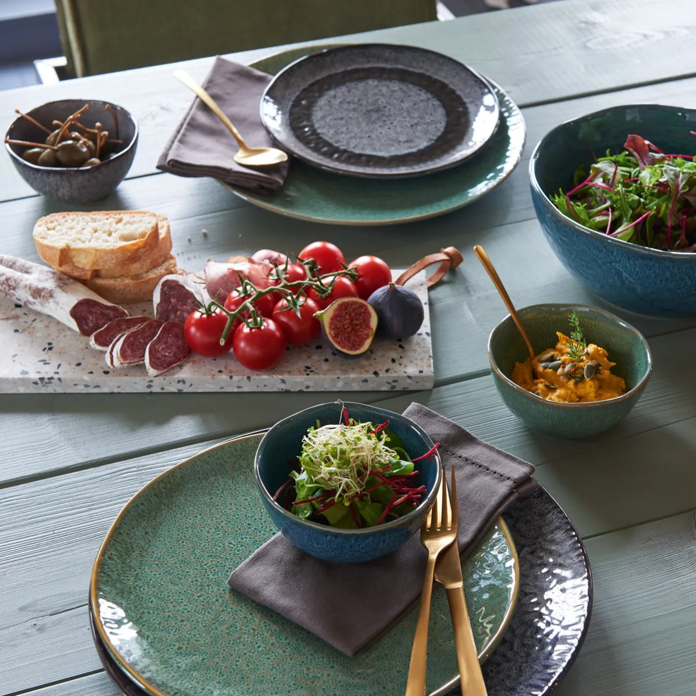 Gestalten Sie Ihren Esstisch wunderschön und erleichtern Sie sich den Alltag mit diesem tollen Teller aus der Serie MATERA. Mit seiner wunderschönen Form passt dieser Teller perfekt zum zugleich verspielten und leidenschaftlichen Landhausstil. Er ist in einem modernen grünen Farbton gehalten. Mix und Match, die Produkte und Farben sind miteinander kombinierbar. Durch die handaufgetragene Effektglasur ergeben sich einzigartige Farbverläufe und individuelle Muster. Dennoch passen alle Stücke harmonisch zusammen. Das Geschirr ist schnittfest, mikrowellengeeignet und spülmaschinenfest und zudem noch ideal geeignet für schicke Dekorationen. MATERA ist ideal für den gedeckten Tisch – ob morgens, mittags oder abends, ob für Heißgetränke oder die Zubereitung und das Genießen von Speisen. Für alle, die Wert auf Qualität legen – bestellen Sie am besten direkt und verschönern Sie sich Ihre vier Wände mit diesem geschmackvollen grünen Teller.