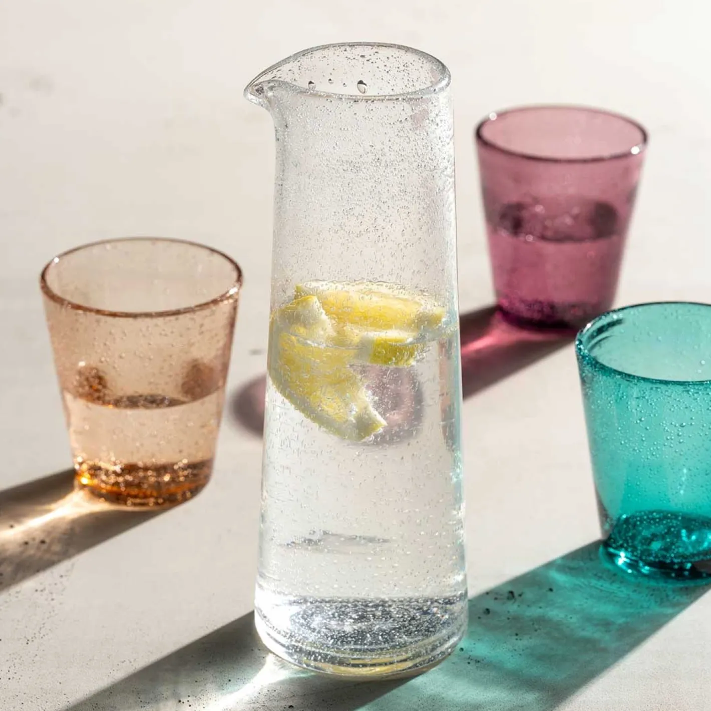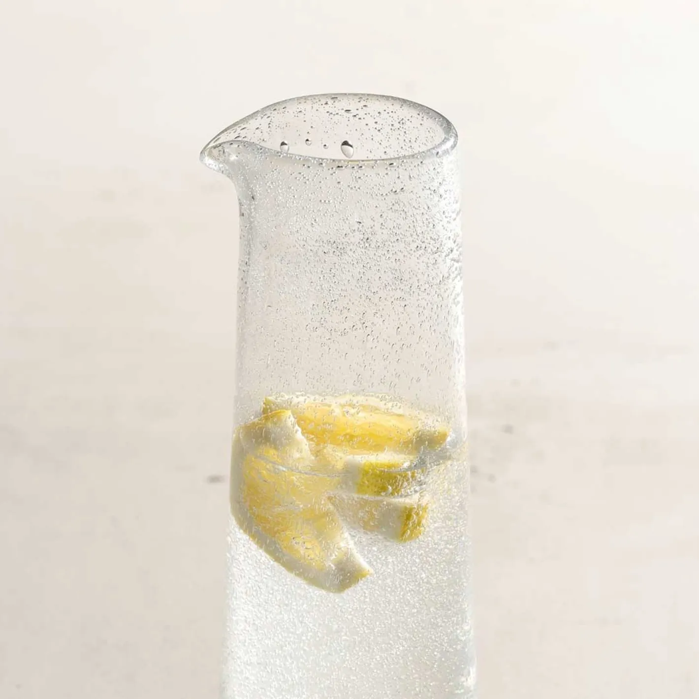Diese handgefertigte Karaffe BURANO aus Schaumglas wird schnell zum Highlight auf deinem Tisch. Mit ihrer konischen Form verbindet sie zeitlose Eleganz mit einzigartiger Struktur. Jedes Stück wird von erfahrenen Handwerkern gefertigt und ist somit ein Unikat. Die besondere Textur des Schaumglases verleiht der Karaffe nicht nur eine edle Optik, sondern sorgt auch für ein angenehmes Gefühl in der Hand. Perfekt für Wasser, Wein oder erfrischende Limonade V die Karaffe BURANO bringt Stil in deinen Alltag und zu besonderen Anlässen. Ein Must-have für alle, die Qualität und Design schätzen.