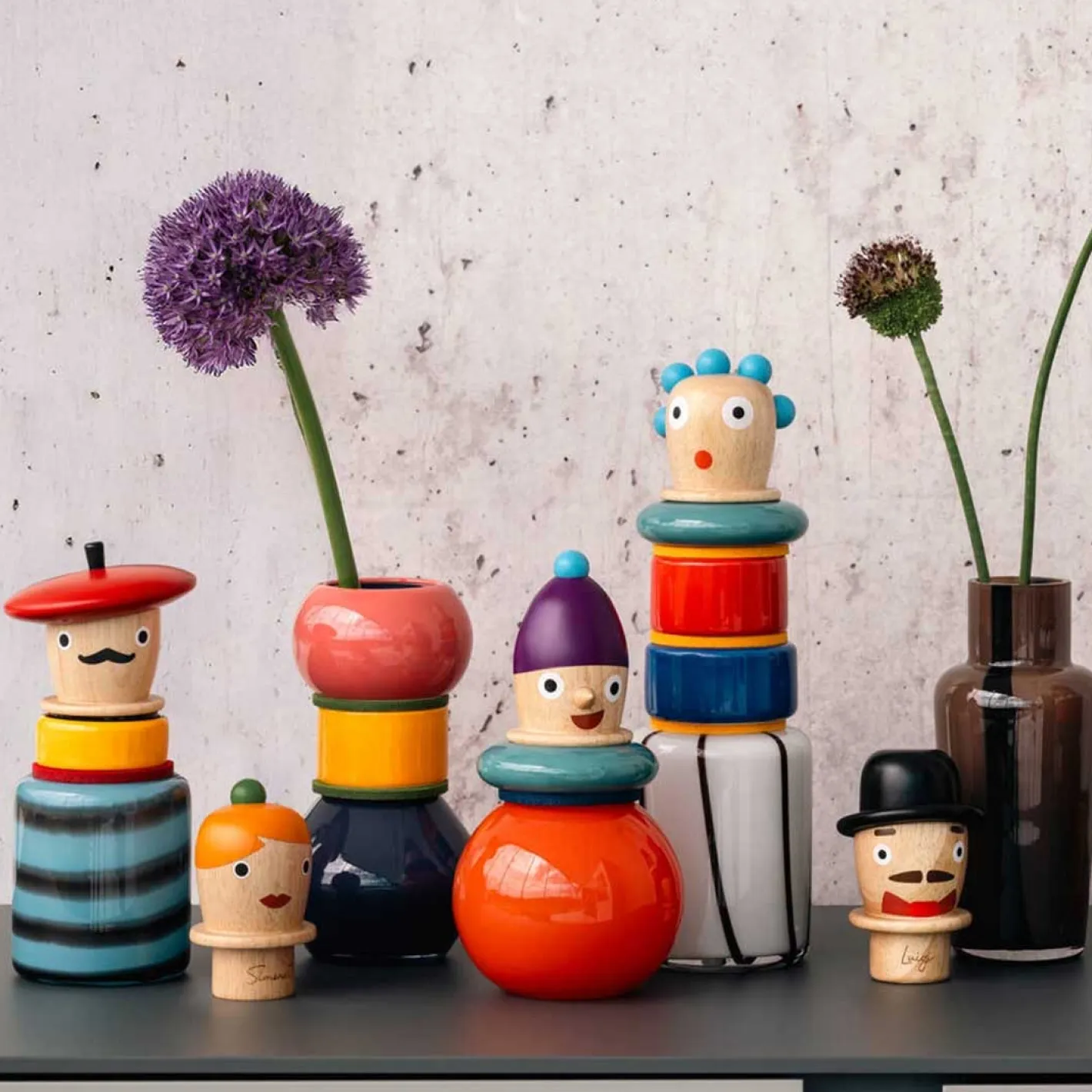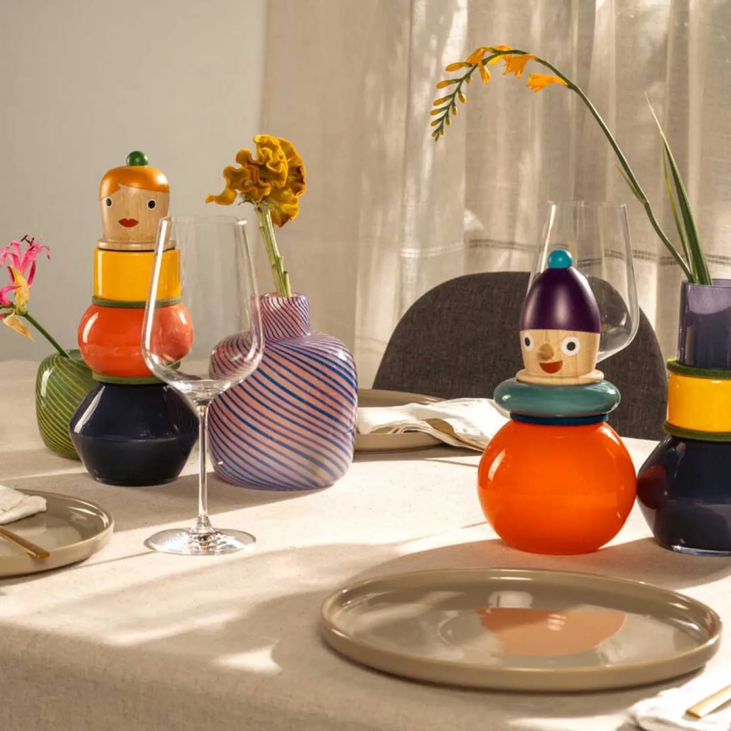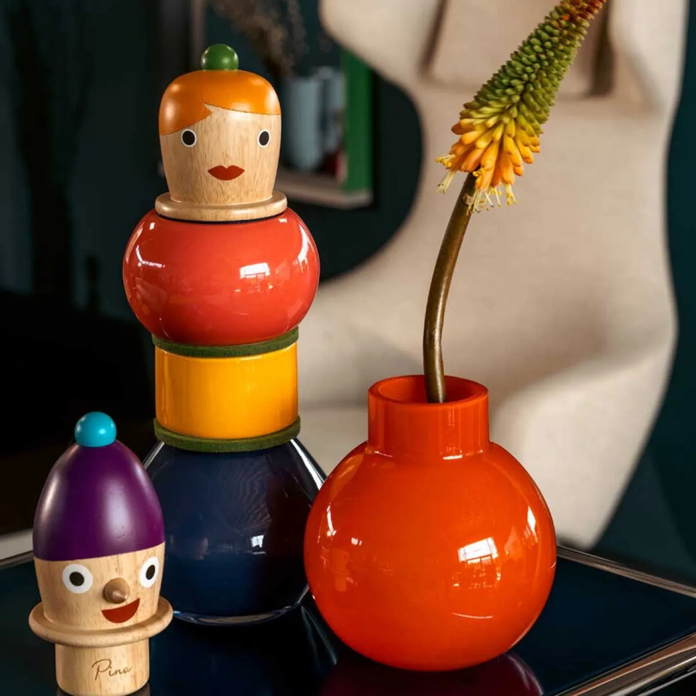 Entdecke die einzigartige Objektvase Pino – ein wahres Kunstwerk für dein Zuhause! Diese hochwertige Designvase aus der BUONI AMICI Kollektion besticht durch ihre ausgefallene Kombination aus Glas und Keramikringen. Der Holzkopf verleiht ihr einen besonderen Charme und macht sie zu einem echten Hingucker. Mit ihrer bunten Farbgestaltung fügt sich die Vase Pino perfekt in jedes Ambiente ein und verleiht deinem Raum eine lebendige Atmosphäre. Ihre einzigartige Form und ihr Charakter machen sie zu einem Sammlerstück. Und das Beste: Es gibt insgesamt vier verschiedene Charaktere in dieser Kollektion, sodass du die Vase wählen kannst, die am besten zu dir passt. Hol dir die Objektvase und verleih deinem Zuhause einen Hauch von Eleganz und Originalität!