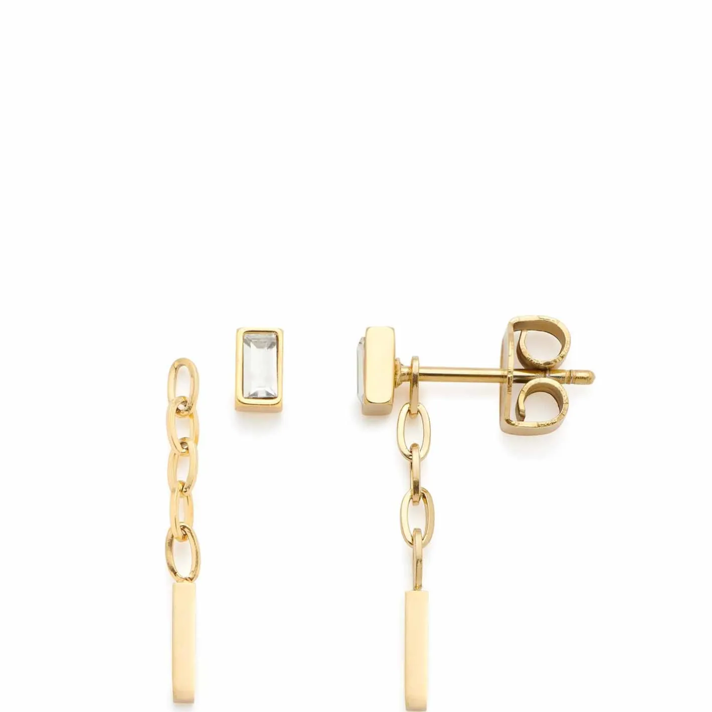 Die Ohrhänger machen das zarte Liora-Set perfekt. Ob als Trio oder solo getragen, Eleganz und moderne Vibes stehen hier im Mittelpunkt. Bei den Ohrhängern präsentiert sich ein Baguette Stein als Stecker. Eine abnehmbare Verlängerung, bestehend aus einer zarten Kette mit eckigem Gold-Stäbchen, rundet das exklusive Deisgn ab. Diese kleinen Schmuckstücke sind eine schöne Ergänzung für einen modernen Stil.