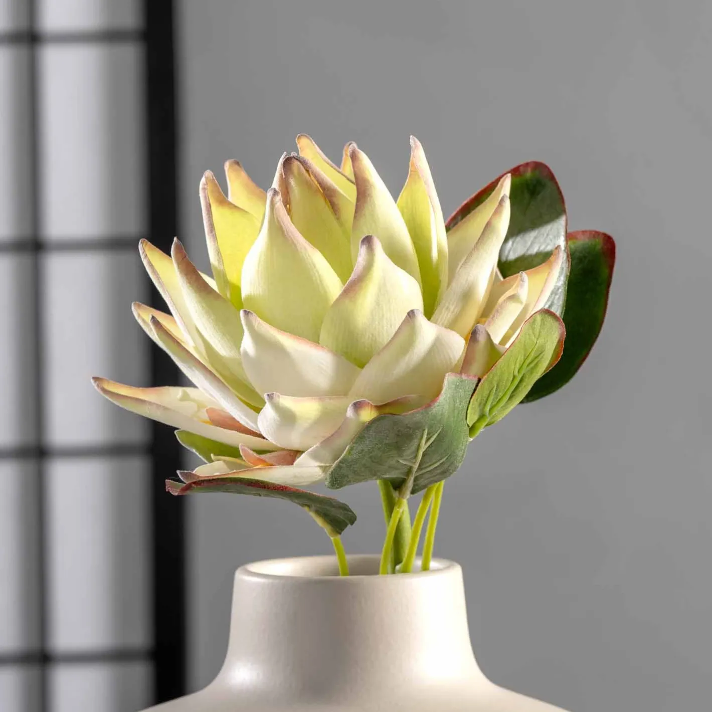 Hol dir mit der Prothea FIORE in Weiß ein Stück zeitlose Eleganz nach Hause! Diese kunstvoll gefertigte Kunstblume sieht täuschend echt aus und bringt einen Hauch Exotik in deine Deko. Ganz ohne Pflegeaufwand bleibt sie dauerhaft schön – ideal für jedes Zimmer, egal ob Wohnzimmer, Flur oder Schlafzimmer. Die detailverliebte Verarbeitung und das stilvolle Design machen die FIORE zum echten Hingucker. Ob solo in einer schlichten Vase oder als Teil eines Arrangements – sie sorgt immer für ein stilvolles Ambiente. Gönn dir das gewisse Extra für dein Zuhause – langlebig, modern und einfach wunderschön!