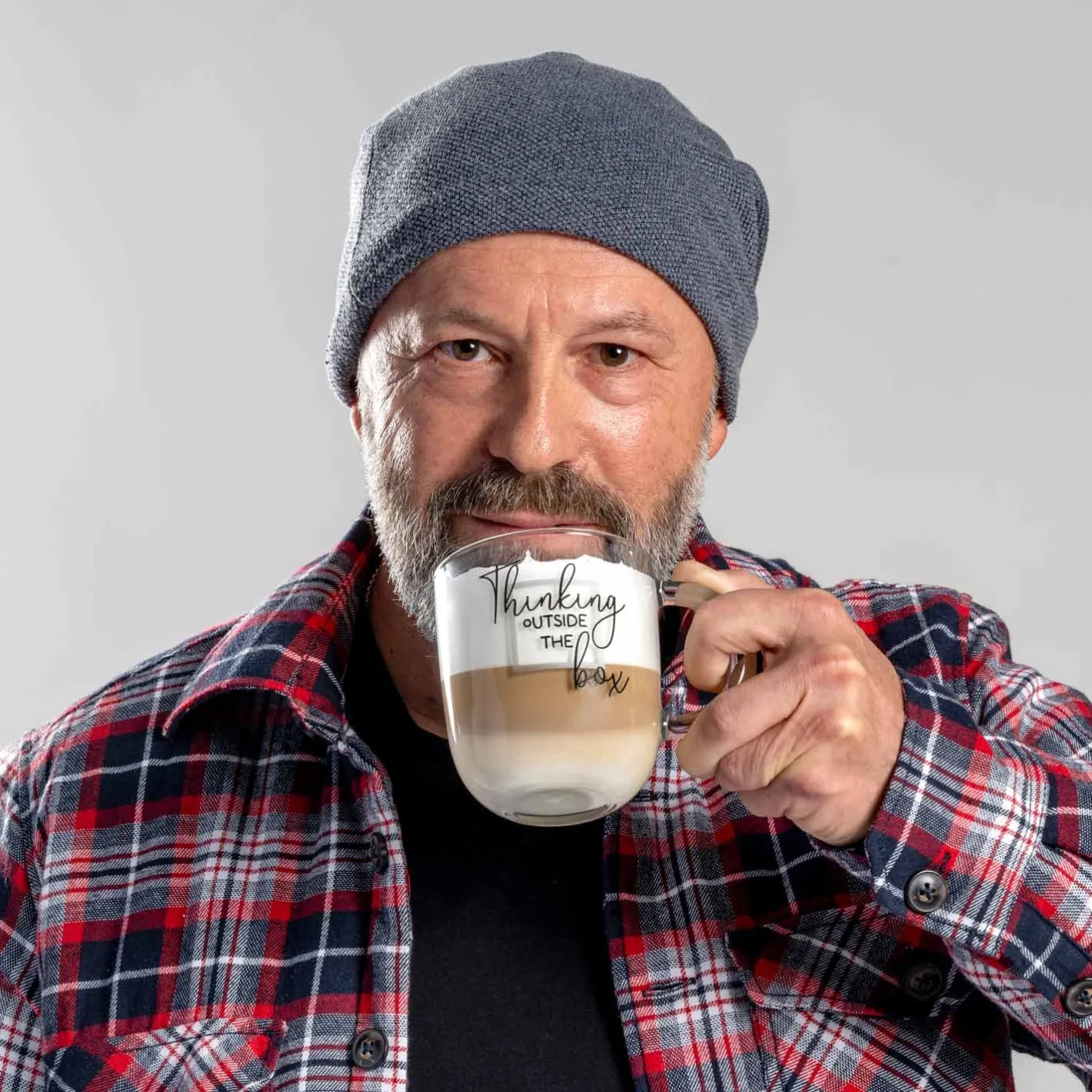 Entdecke unsere schöne Glastasse mit dem inspirierenden Spruch ‚Thinking outside the box‘. Perfekt als Geschenk für kreative Denker und Visionäre, die stets über den Tellerrand hinausblicken. Die schwarze Aufschrift verleiht der Tasse eine zeitlose Eleganz, während das Glasdesign ein modernes und doch klassisches Flair verströmt. Ob beim Morgenkaffee oder dem abendlichen Tee, diese Tasse wird jeden Moment zu einem Anstoß für innovative Ideen machen. Bringe Stil in den Alltag deiner Lieben oder belohne dich selbst mit dieser einzigartigen Glastasse. Denke außerhalb der Norm – bestelle jetzt und erlebe Genuss mit Inspiration.