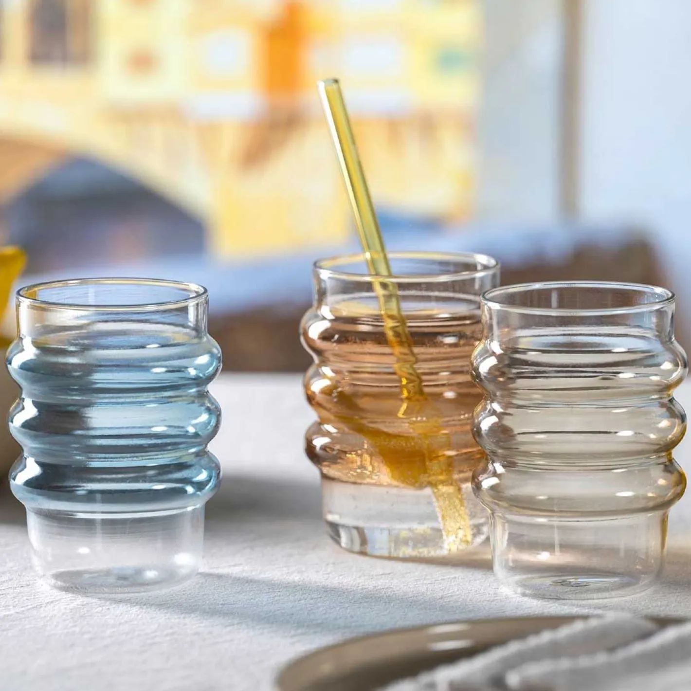 Für alle, die es farbig mögen: Hier ist das Trinkglas SOLE in Blau! Dieses trendige Bubble-Glas mit seiner einzigartigen Struktur ist ein echter Blickfang – perfekt für kalte und heiße Getränke. Mit seinem eleganten Design in dezentem Taupe bringt es Farbe und eine besondere Haptik auf deinen Tisch. Egal ob Kaffee, Tee oder ein erfrischender Drink, dieses Glas liegt angenehm in der Hand und sorgt für einen modernen Akzent. Ideal für den Alltag oder besondere Anlässe. Hol dir das trendige Bubble-Glas SOLE und genieße deine Getränke mit Stil! Dieses Set enthält 2 gleiche Trinkgläser.
